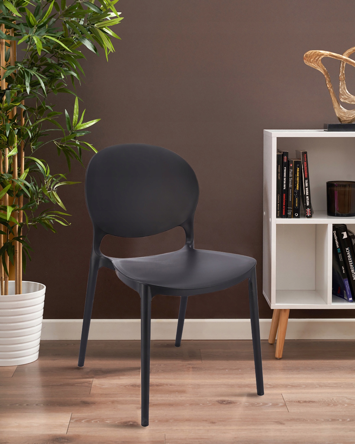➡️ Owalne oparcie jak i całe krzesło wykonane jest z polipropylenu co zapewnia mu długotrwałą wytrzymałość, a proste nogi zapewniają idealną stabilność.
