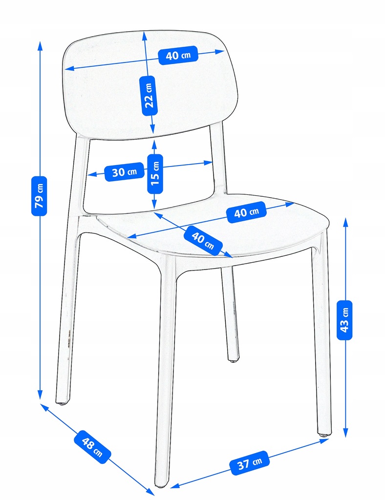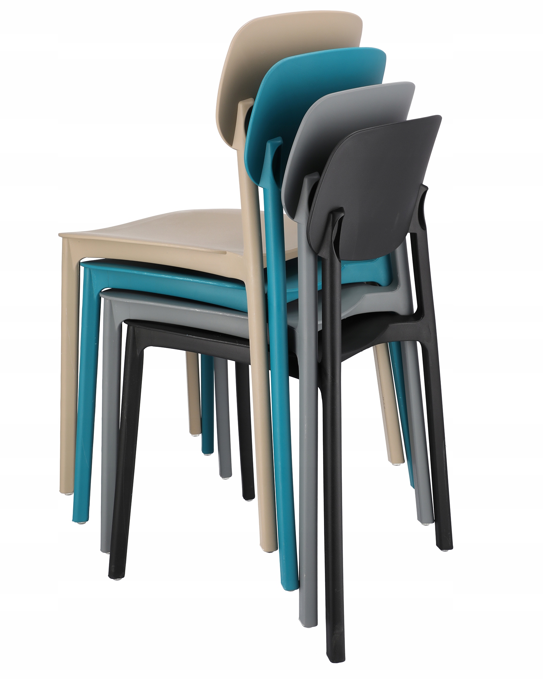 ➡️ Owalne oparcie jak i całe krzesło wykonane jest z polipropylenu co zapewnia mu długotrwałą wytrzymałość, a proste nogi zapewniają idealną stabilność.