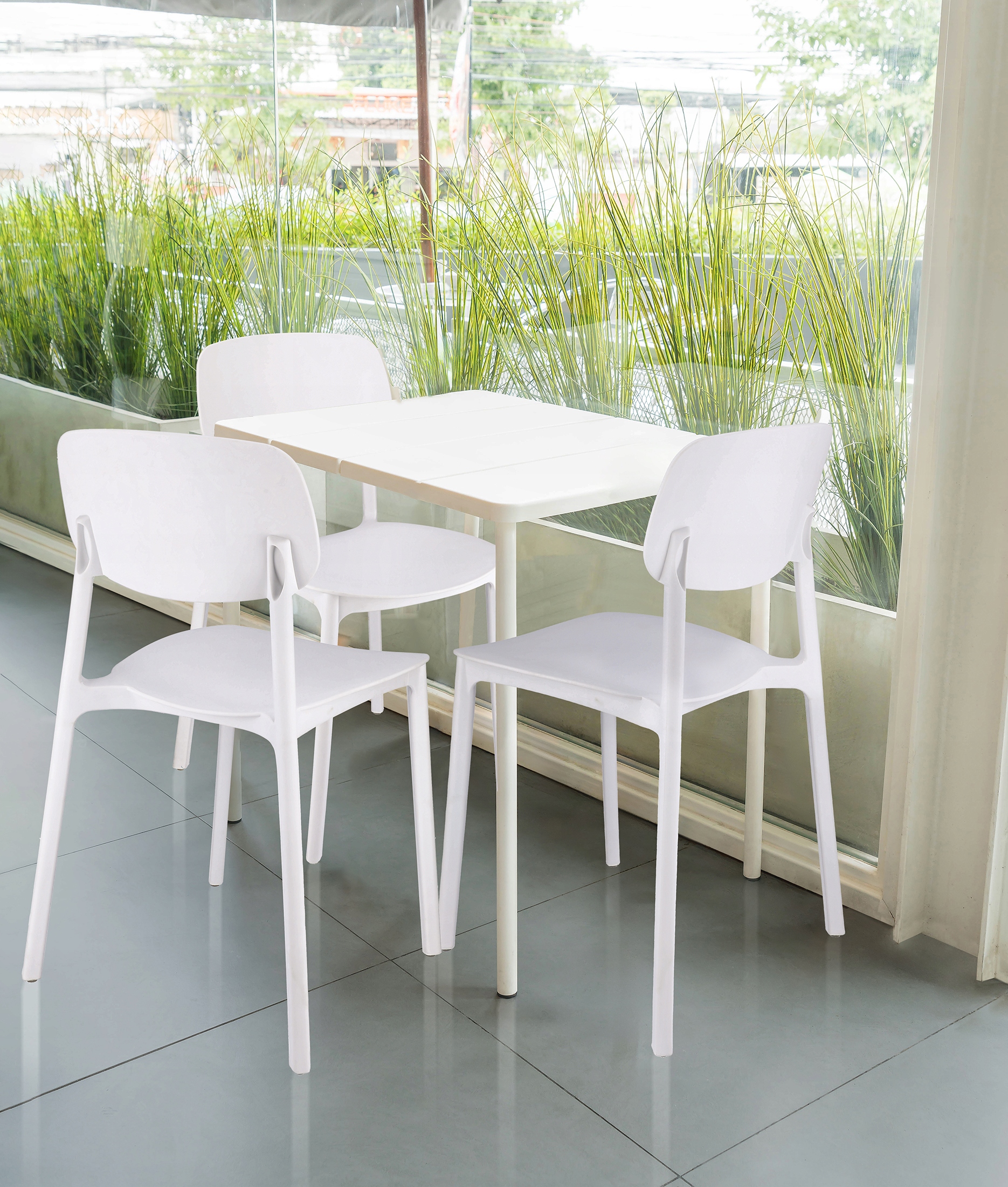 Krzesło wykonane zostało w jednej bryle – nie wymaga skręcania oraz jest odporne na działanie warunków atmosferycznych, dlatego może być używane zarówno wewnątrz, jak i na zewnątrz pomieszczeń.