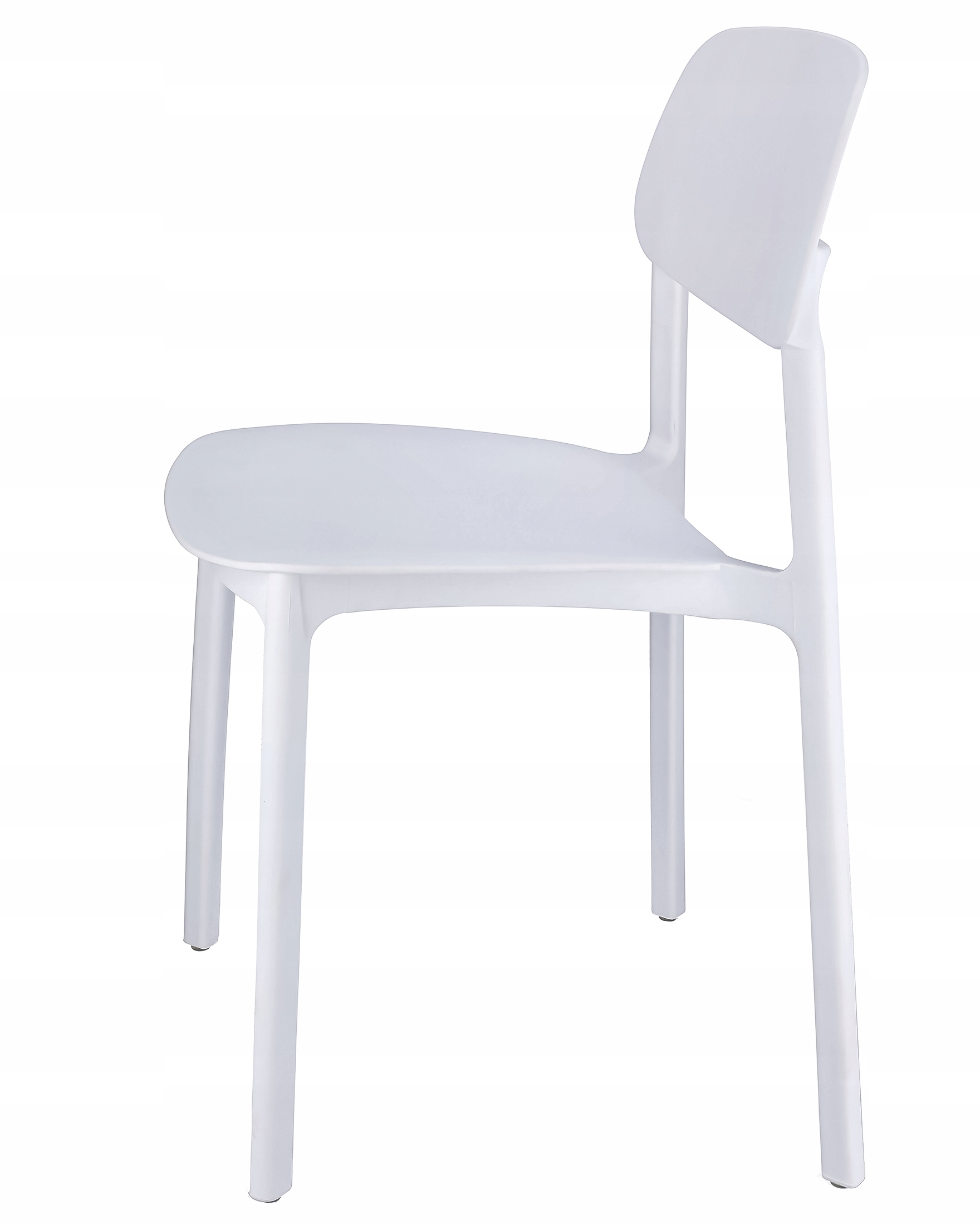 Owalne oparcie jak i całe krzesło wykonane jest z polipropylenu co zapewnia mu długotrwałą wytrzymałość, a proste nogi zapewniają idealną stabilność.
