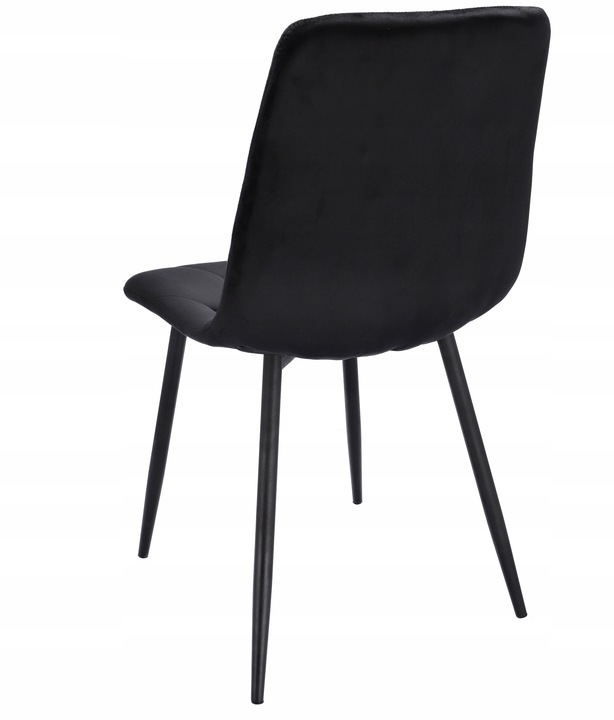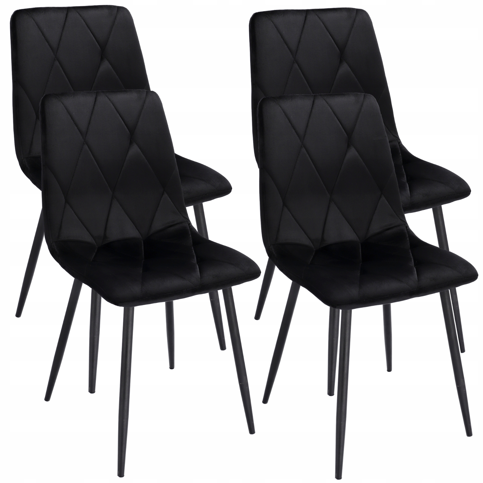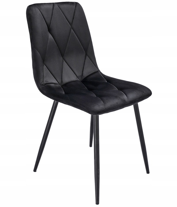 ➡️ Krzesła tapicerowane są welurem, a po wewnętrznej stronie pikowane regularnymi przeszyciami w romby. Wysokie i smukłe nóżki w czarnym kolorze wyglądają bardzo szykownie oraz gwarantują idealną stabilność.