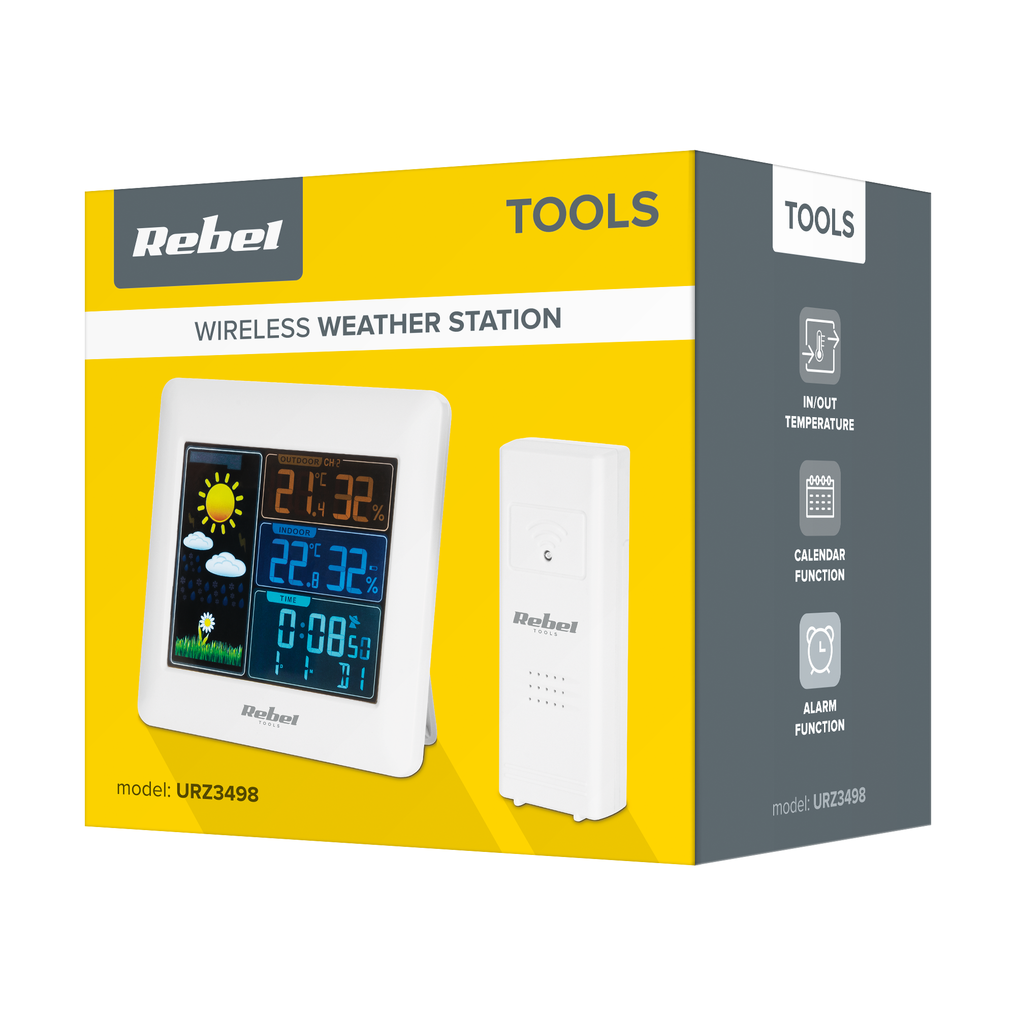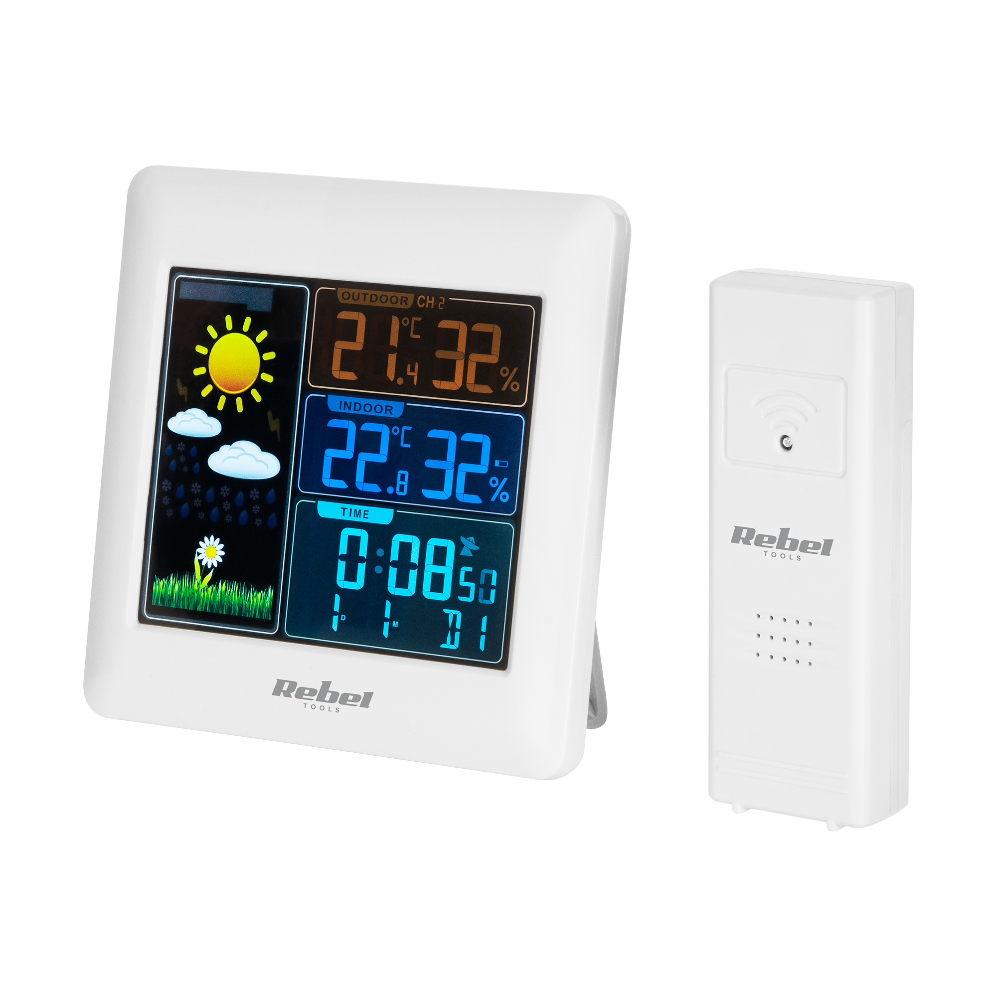 Specification: Bezprzewodowa stacja pogodowa czujnik zewnętrzny Rebel LCD kolor barometr