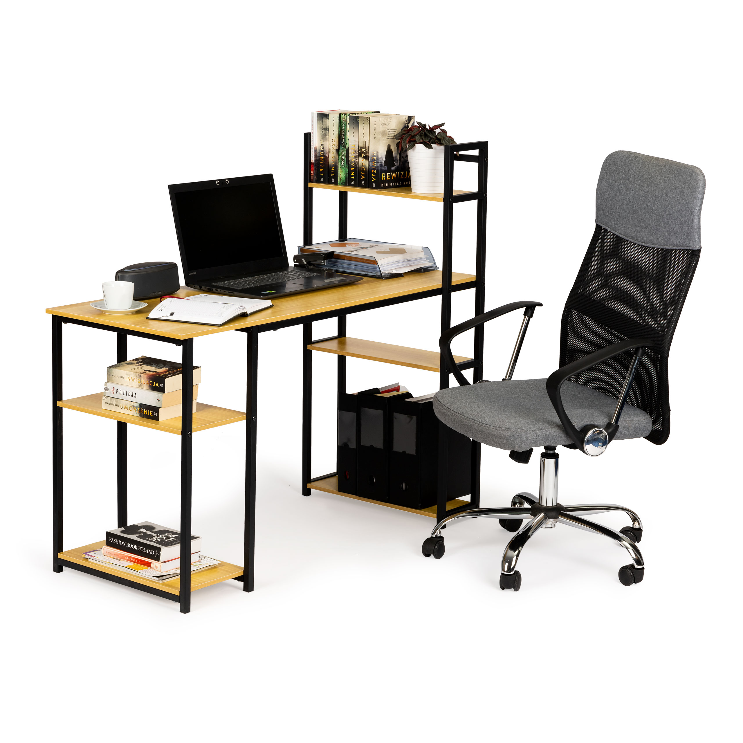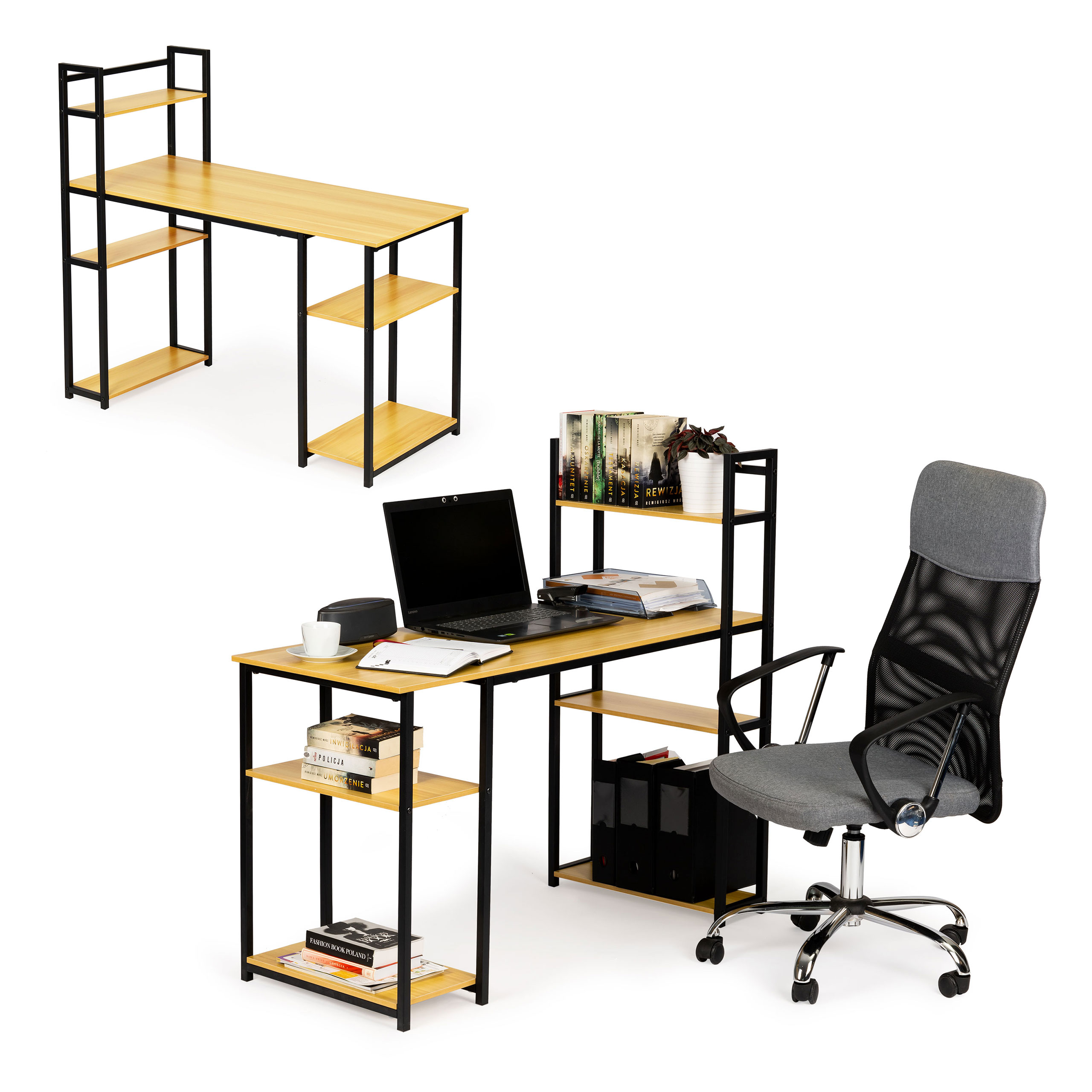 Specification: Biurko komputerowe biurowe stół + regał półki loft jasny dąb ModernHome