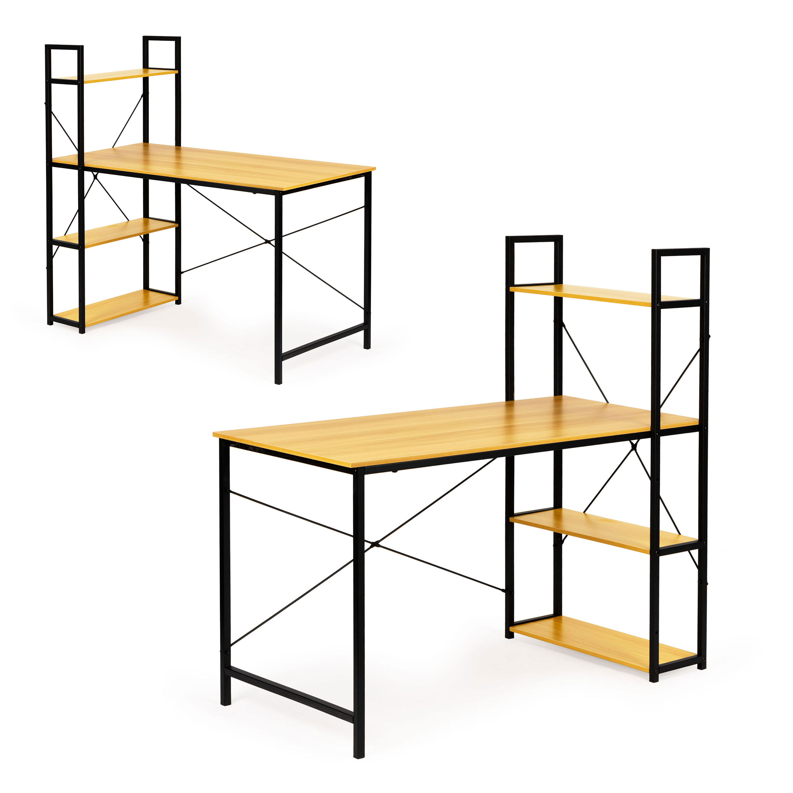 Biurko komputerowe biurowe stół + regał półki loft jasny dąb ModernHome