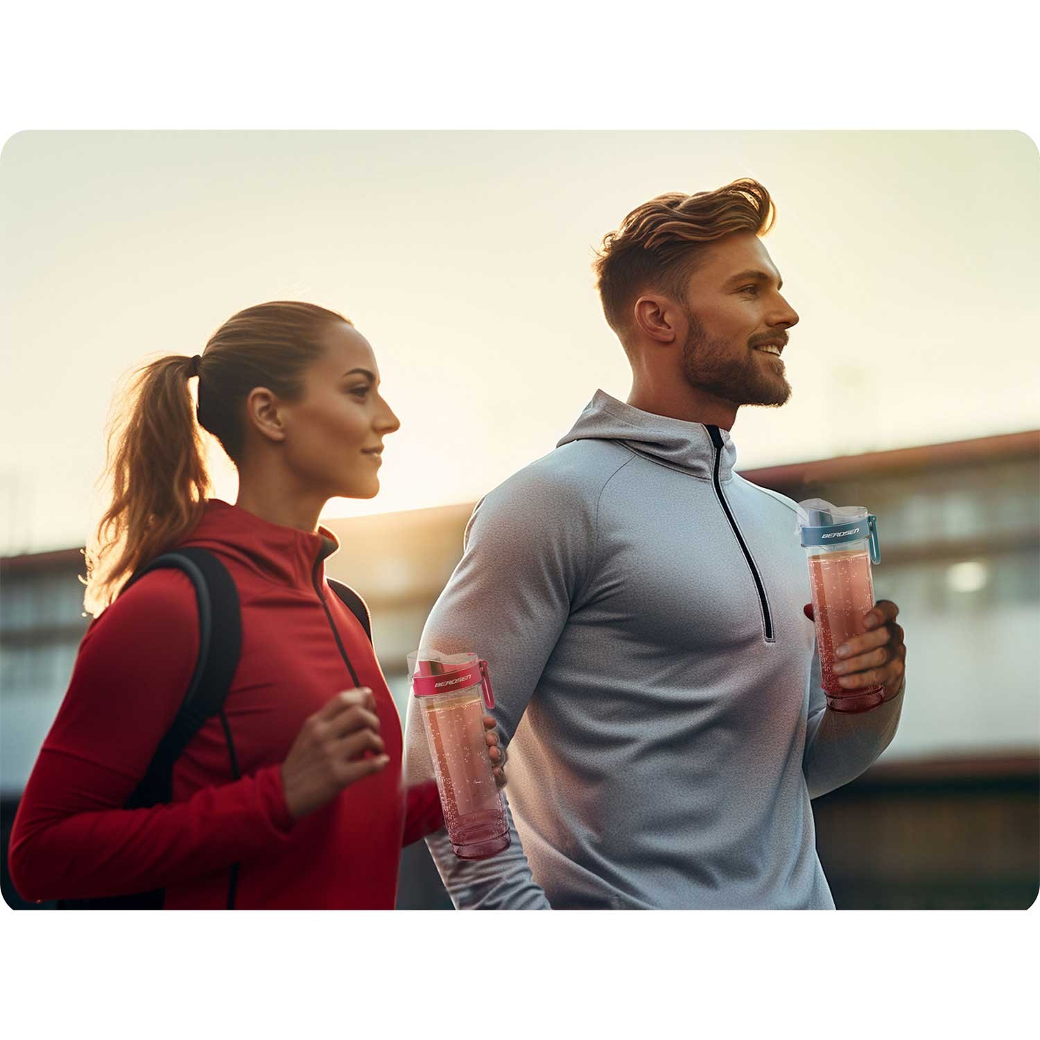 - Mobilność — butelkę można zabrać ze sobą np. na siłownię lub spacer.
