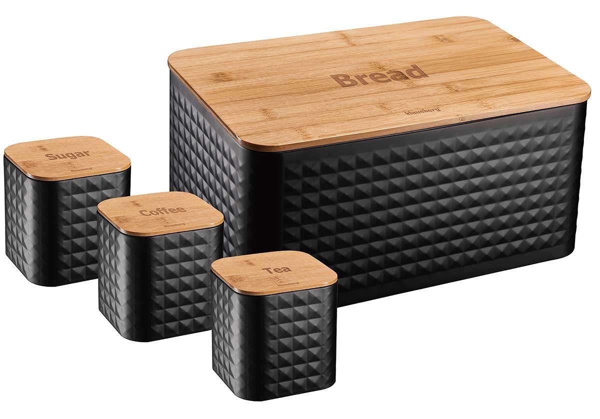 Chlebak stalowy z deską bambusową oraz zestawem pojemników kuchennych KLAUSBERG