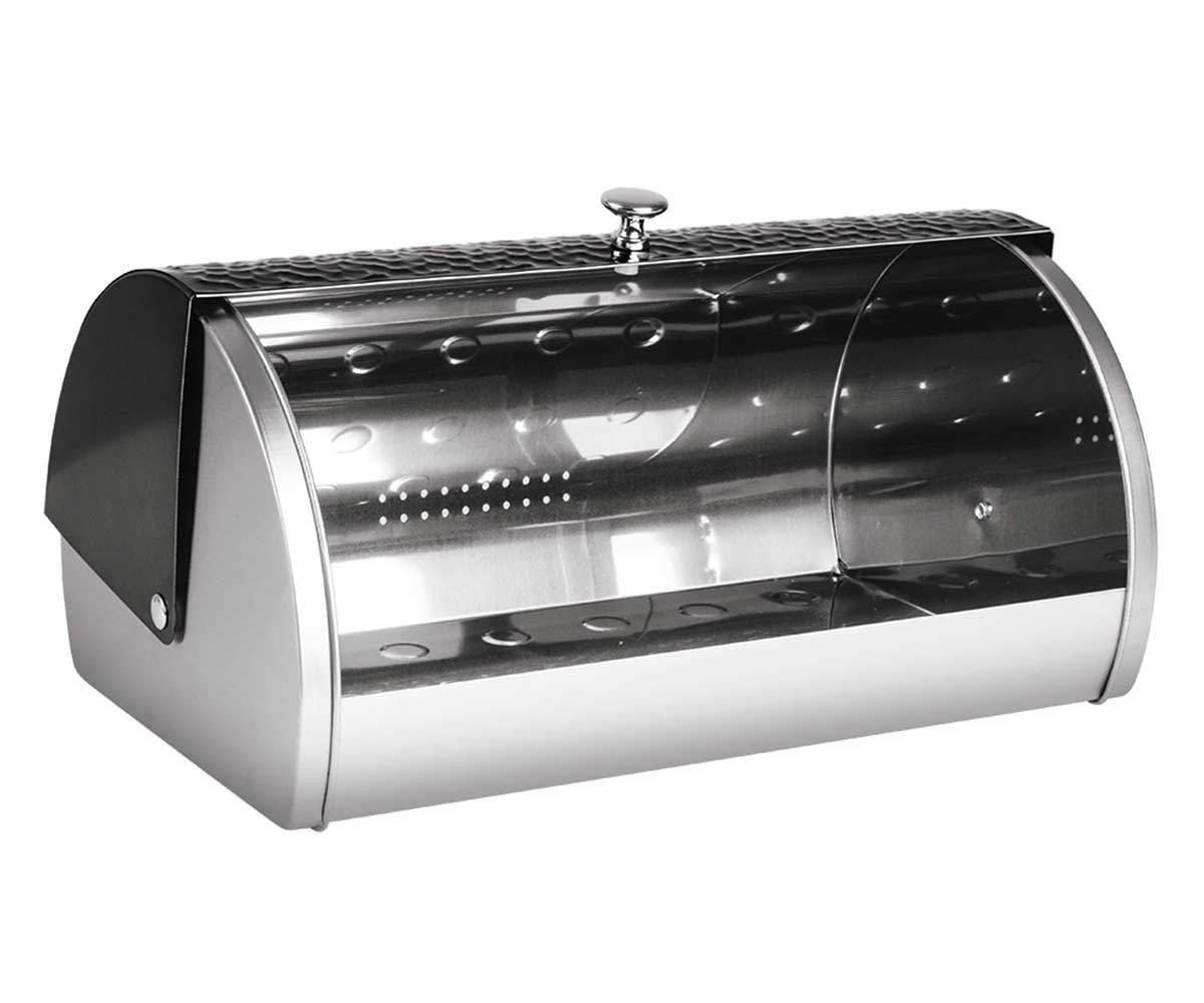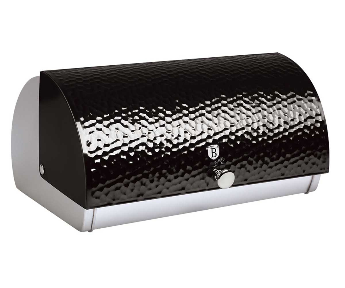Chlebak ze stali węglowej w kolorze srebrnym. Pokrywa w kolorze czarnym z efektem 3D.