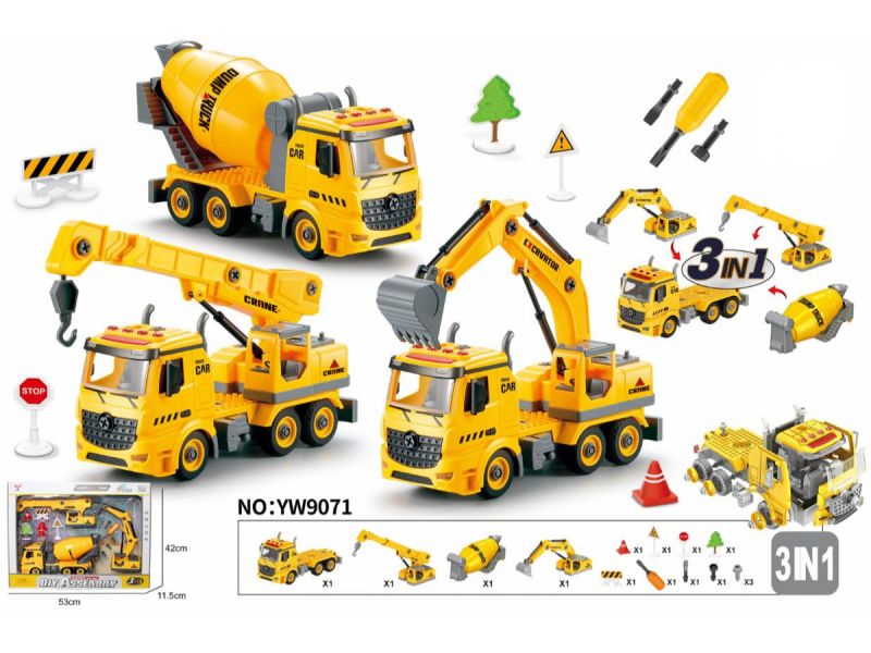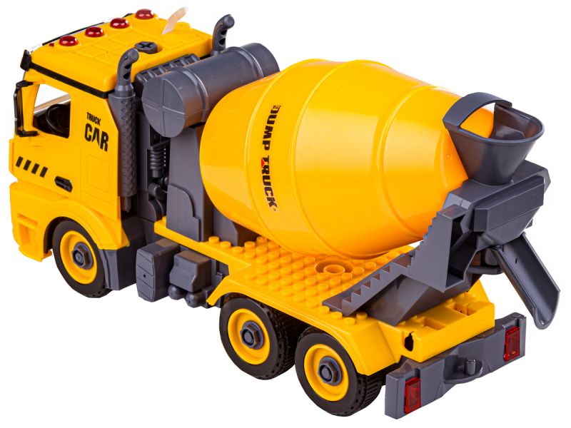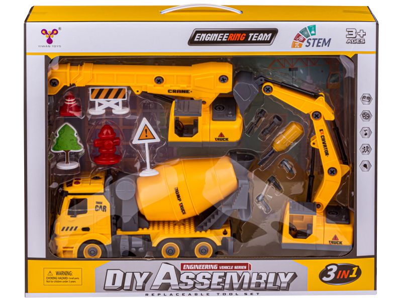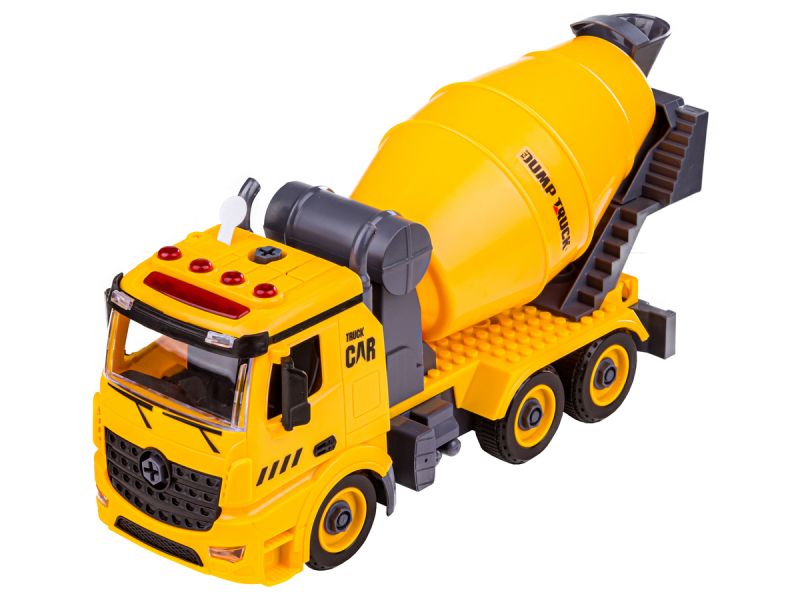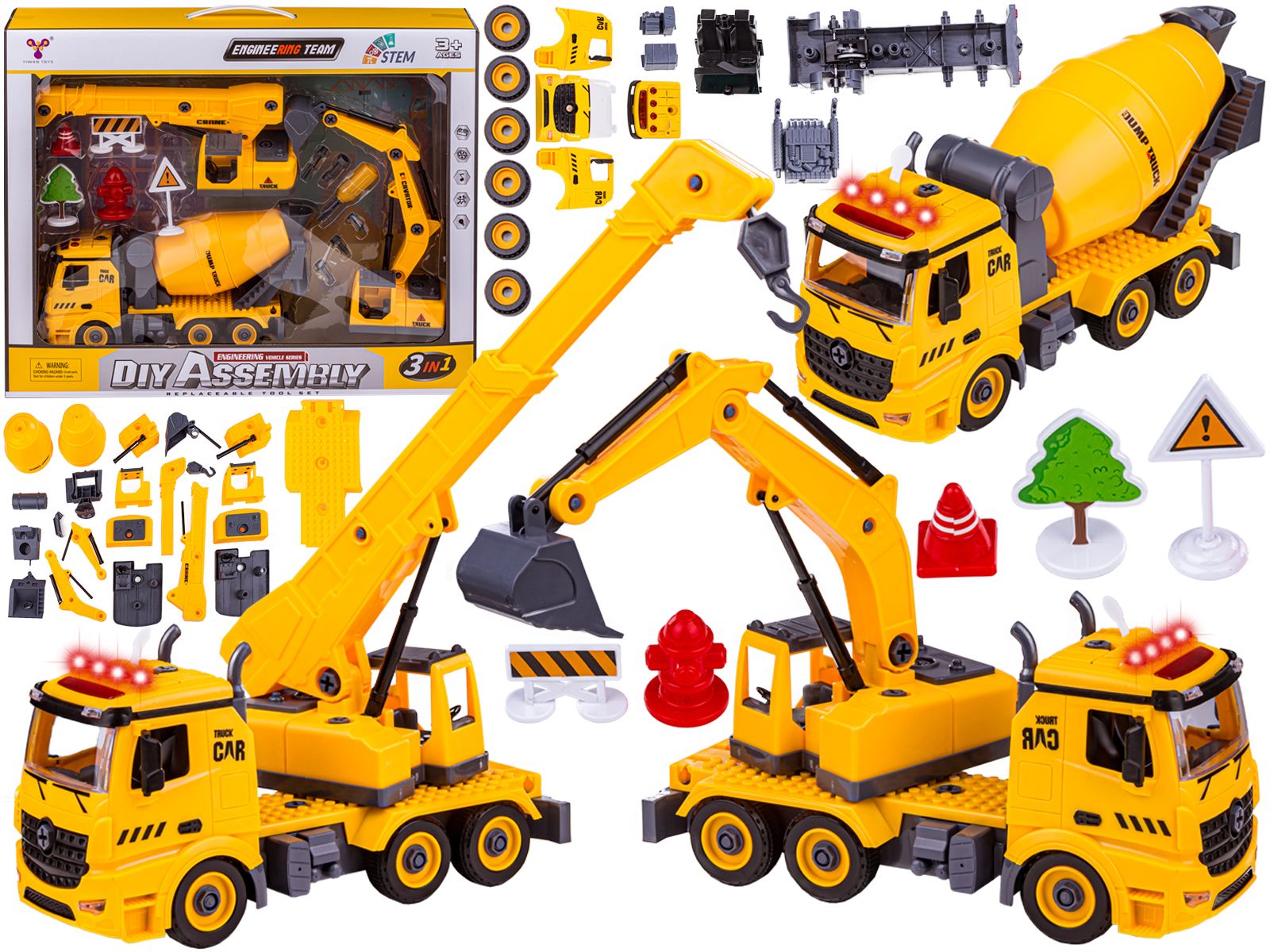 Specification: Ciężarówka 3w1, Samochód Ciężarowy Do Rozkręcania, Betoniarka, Koparka, Dźwig Z Hakiem