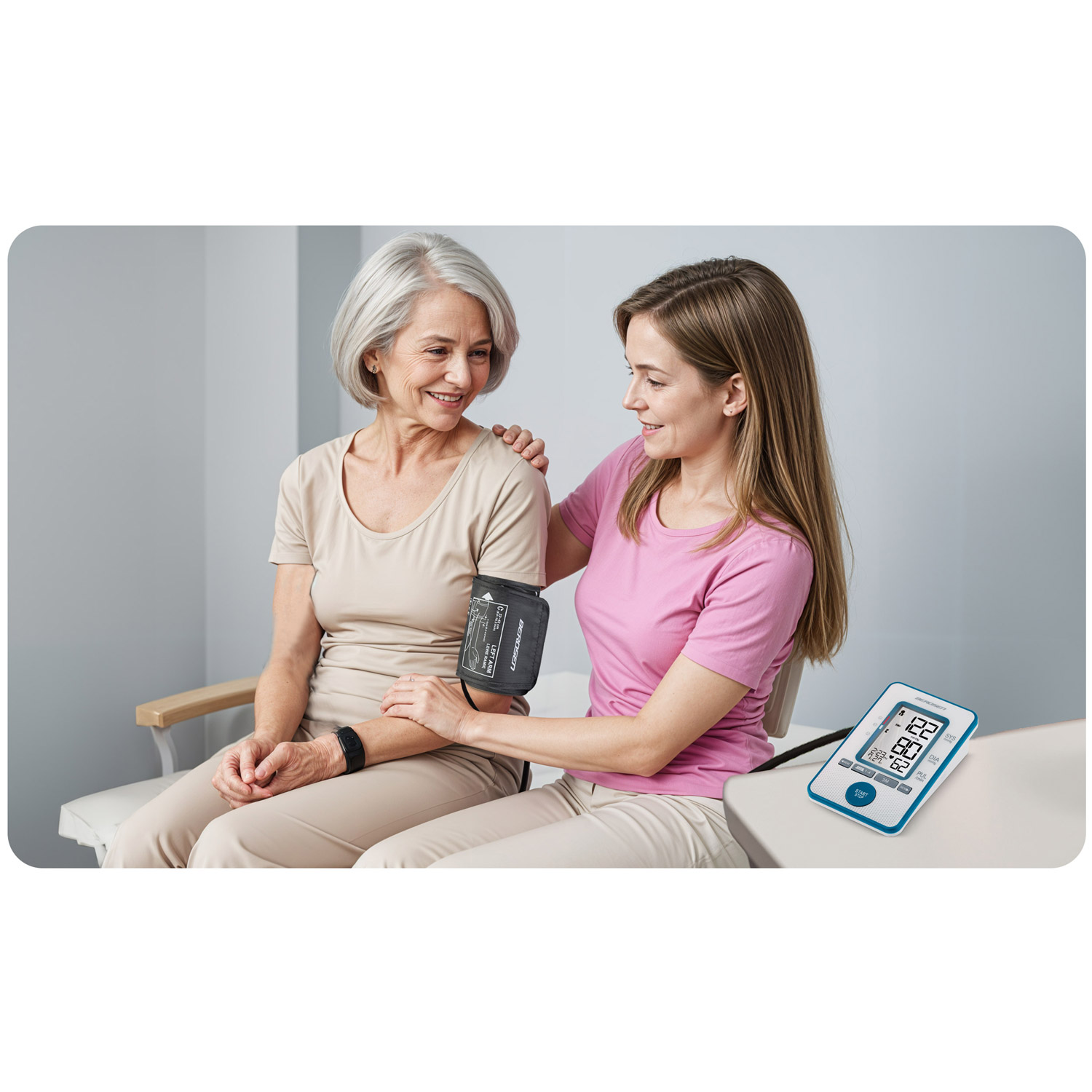 Dzięki uniwersalnej i wygodnej opasce regulowanej na wytrzymały rzep nada się do pomiaru ciśnienia dla całej rodziny — bez względu na obwód ramienia.