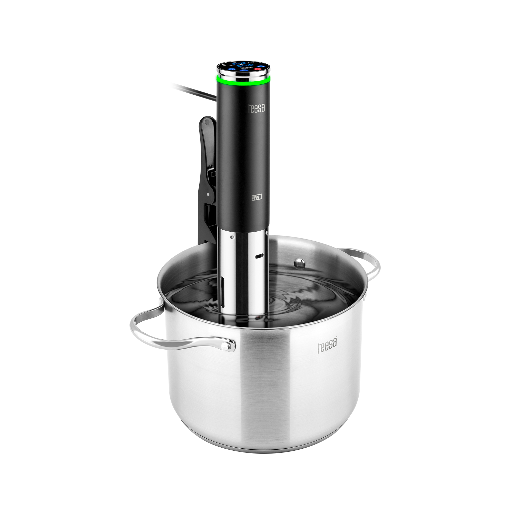 Zaletą modelu SV70 jest jego budowa. Praktyczny zaczep sprawia, że cyrkulator nie wymaga specjalnych naczyń, bo w szybki i łatwy sposób przymocujesz go do każdego garnka. Smukła konstrukcja daje Ci także pewność, że bez problemu znajdziesz miejsce dla tego urządzenia w swojej kuchni.