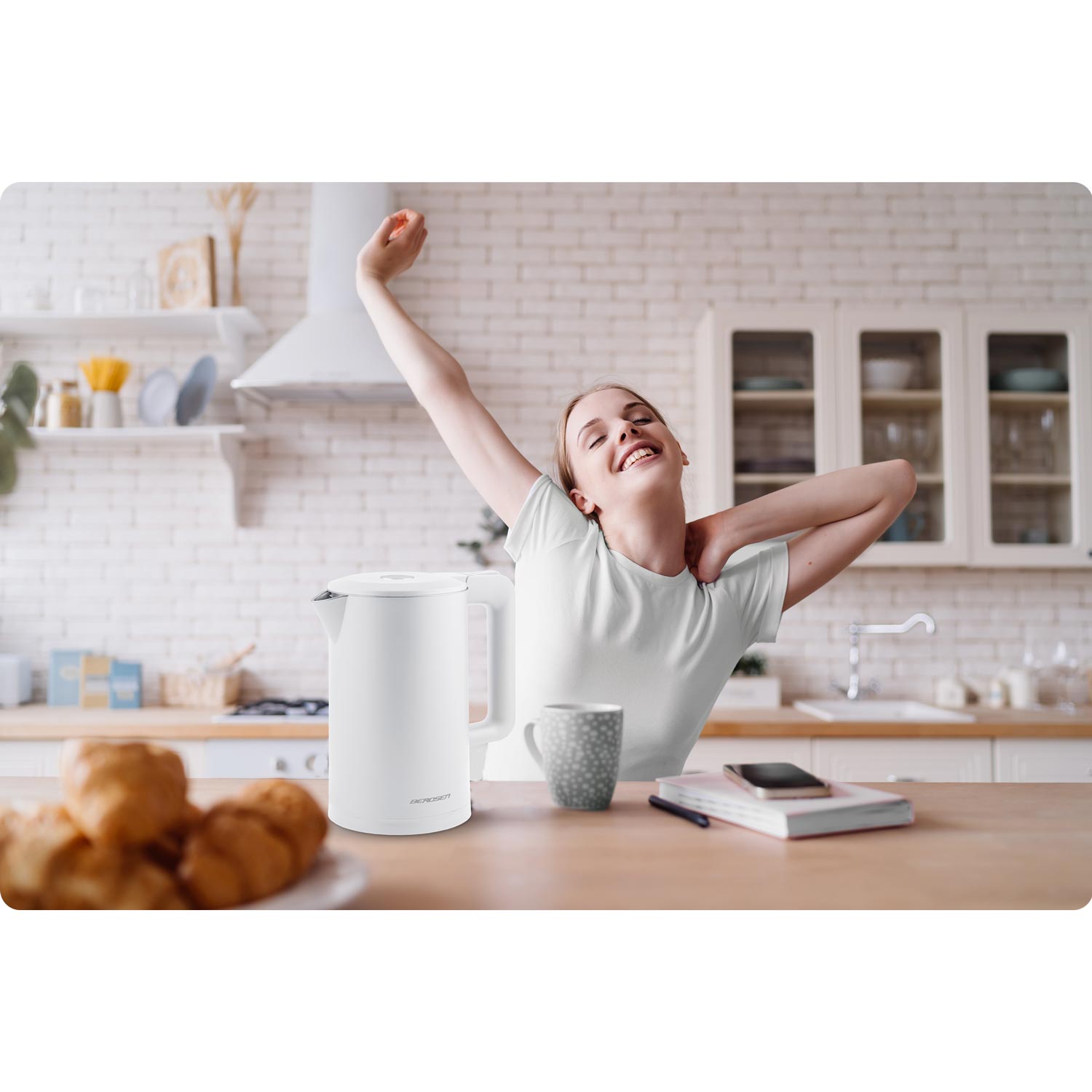 ✅ Dzięki dwuwarstwowej technologii obudowy CoolTouch™ złożonej z warstwy ze stali nierdzewnej i warstwy tworzywa wysokiej jakości czajnik nie nagrzewa się z zewnątrz.