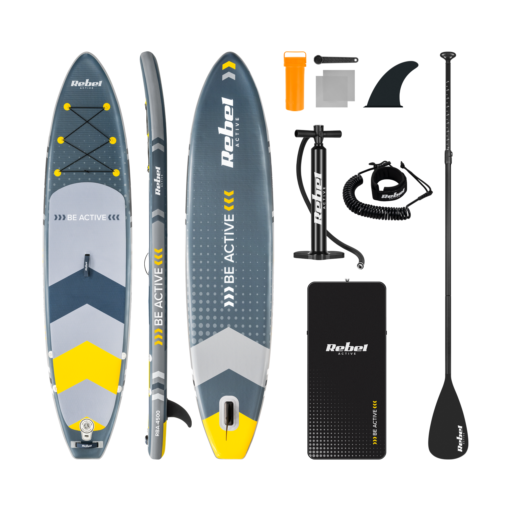 Wybierasz się nad jezioro i obawiasz się nudnego plażowania? Deska SUP Rebel Active RBA-4500 pozwoli Ci odkryć pełen potencjał wodnych przygód! Jest to świetne narzędzie do tworzenia miłych wspomnień z rodziną i przyjaciółmi. Dzięki desce do pływania możesz organizować wycieczki wodne, by cieszyć się aktywnością fizyczną i otaczającą Was przyrodą.