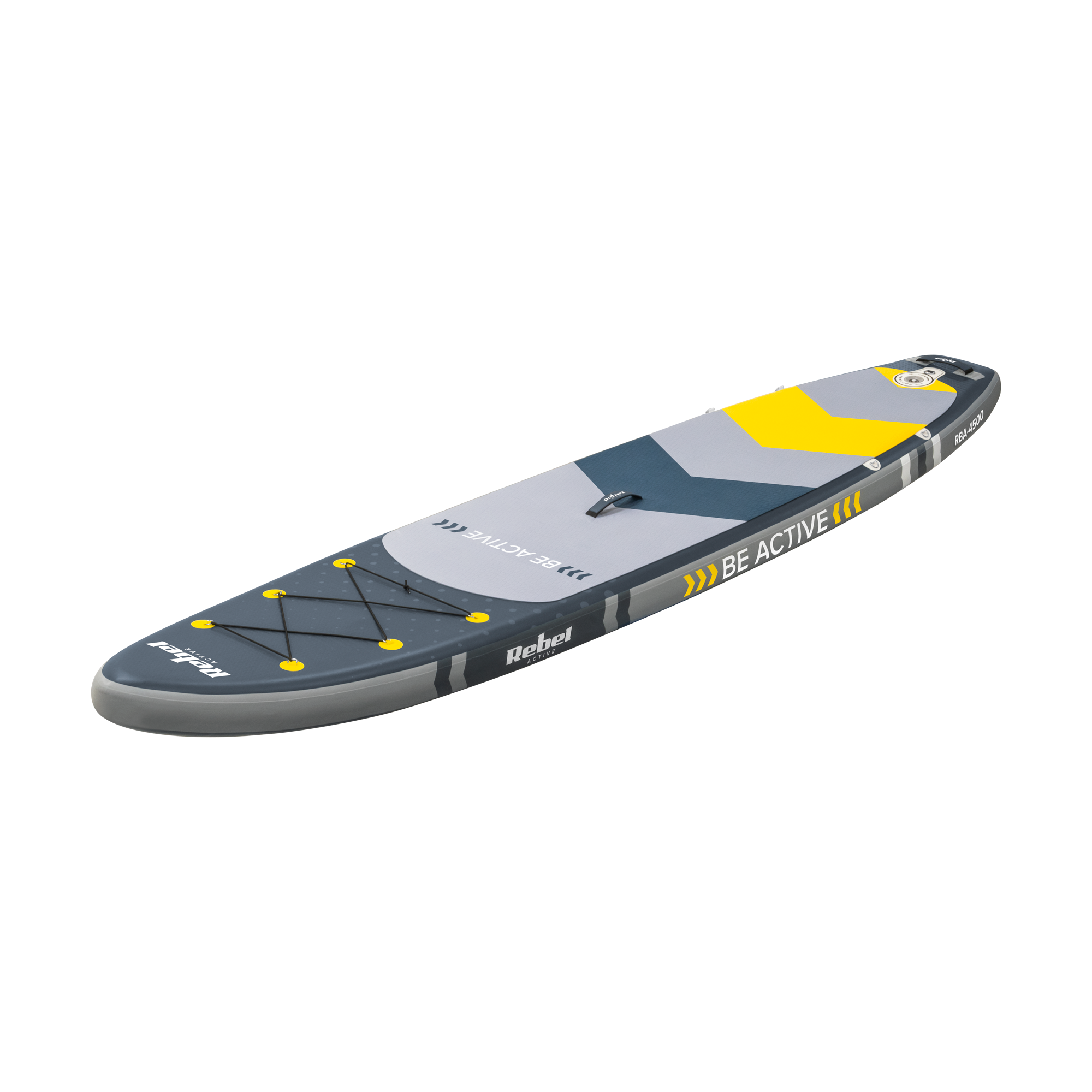 Dzięki dwóm uchwytom do przenoszenia – centralnemu i tylnemu – transportowanie na brzegu deski SUP Rebel Active jest łatwe i wygodne. Z kolei zintegrowane uchwyty bagażowe z linką mocującą na dziobie, umożliwiają bezpieczne przewożenie niezbędnych rzeczy podczas wodnych eskapad.