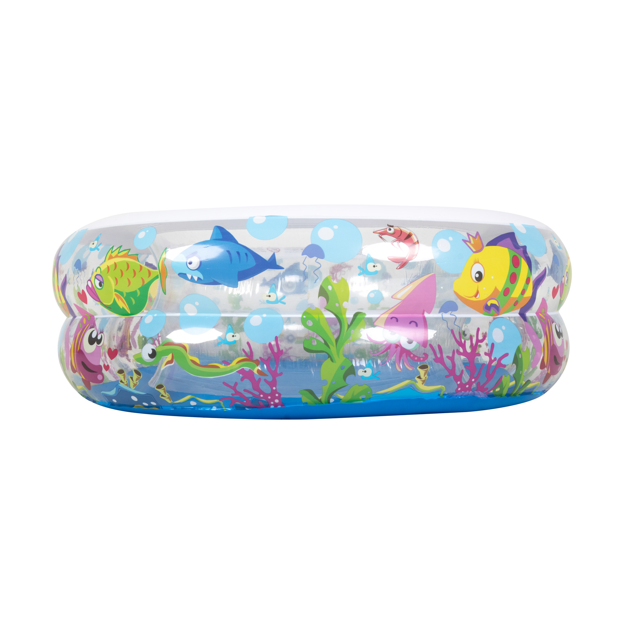 Duży basen SUNCLUB z motywem wesołych rybek to idealne miejsce na zabawę w upalne dni dla dzieci powyżej 6. roku życia. Dzięki wygodnym wymiarom i bezpiecznej konstrukcji sprawdzi się doskonale w przydomowym ogrodzie.