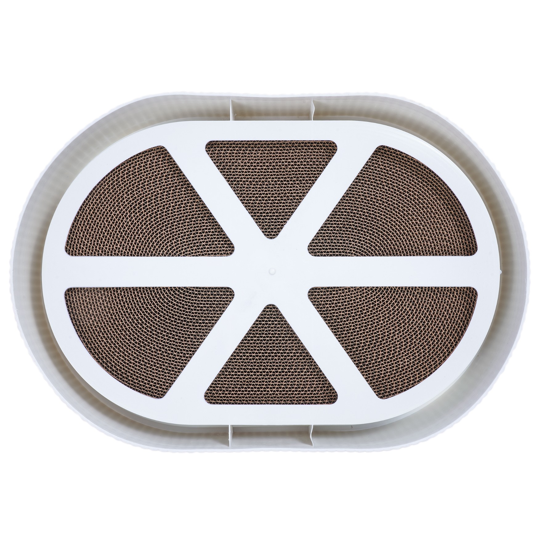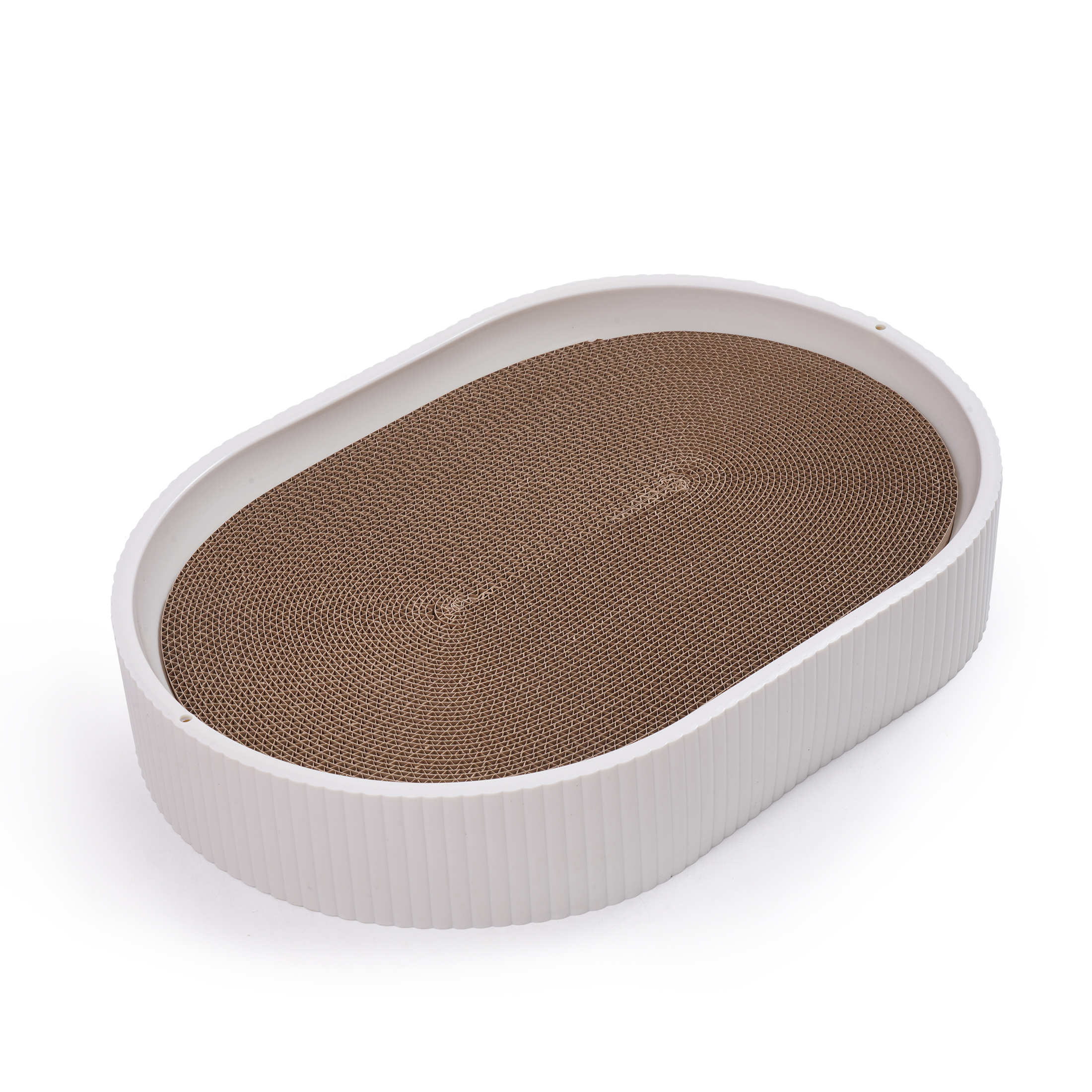 ➡️ Podstawa jest bardzo stabilna i trwała. Powierzchnia tekturki jest chropowata i posiada wypustki, dzięki czemu można pomiędzy nie wsypać kocimiętkę, dodając zwierzakowi więcej doznań do zabawy.