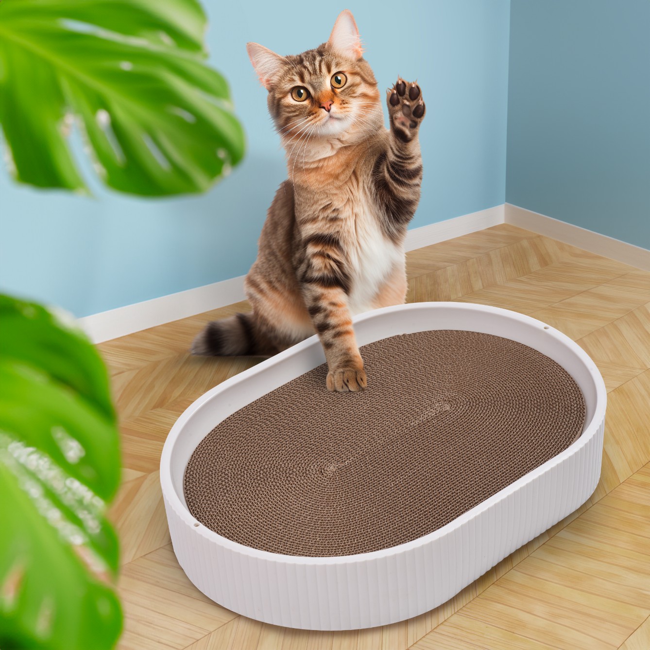 ➡️ Kolorystyka drapaka i jego minimalizm powoduje, że pasuje on do każdego wnętrza, a sam zwierzak nie jest przytłoczony ilością kolorów. Dzięki prostocie tej zabawki kot może bawić się wiele godzin.