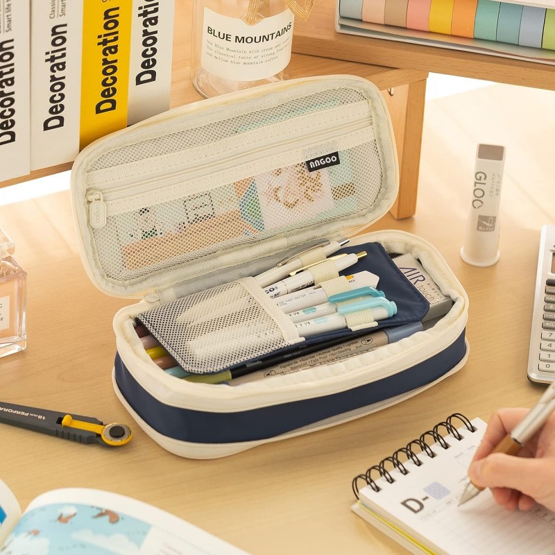Pojemny, wielofunkcyjny trzykomorowy piórnik