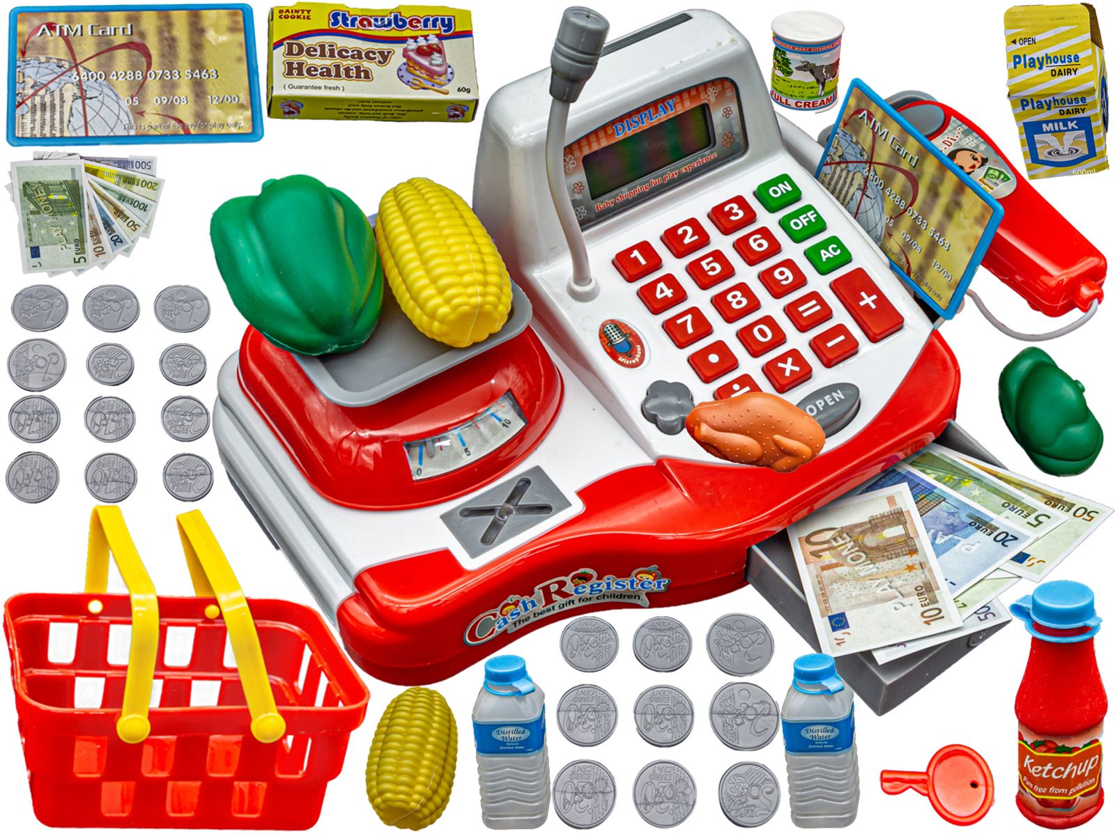 Specification: Edukacyjna sklepowa kasa fiskalna – kalkulator, waga, akcesoria