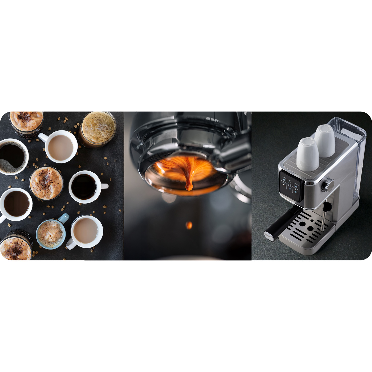 Wydajna pompa ciśnieniowa 20 bar i precyzyjny system zaparzania wydobywają z kawy wszystko, co najlepsze – intensywny aromat, głęboki smak i perfekcyjną cremę.