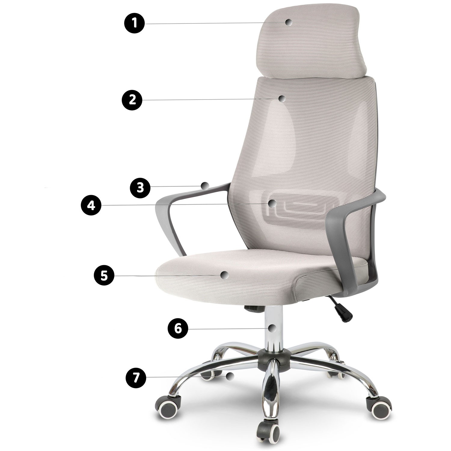 Specification: Fotel biurowy z mikrosiatką Praga – jasnoszary