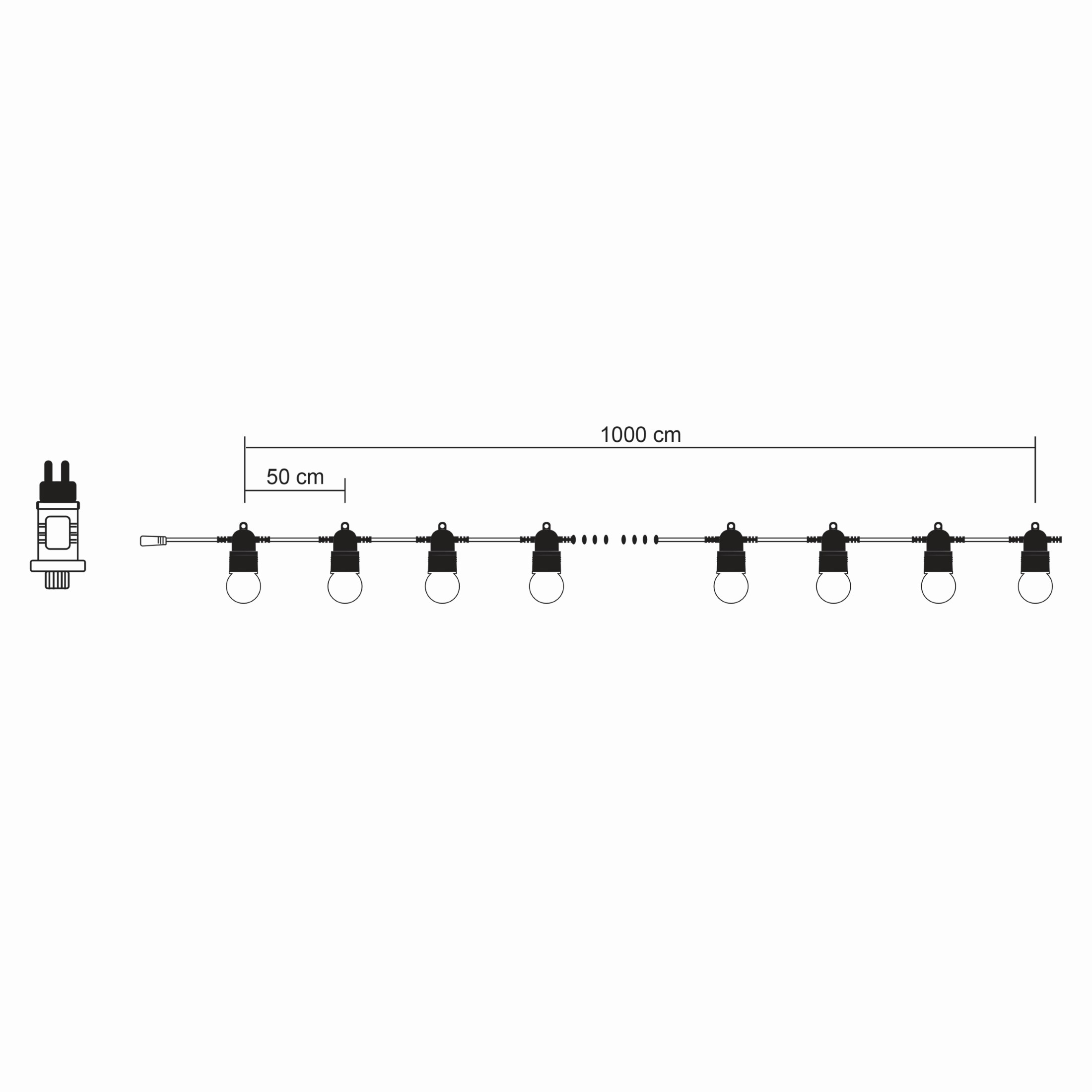- Odległość między żarówkami: 50 cm
