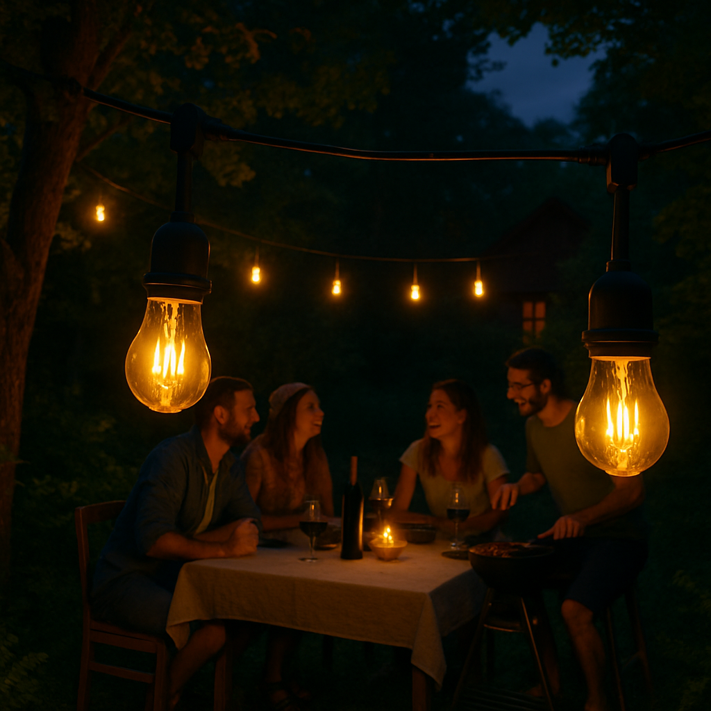 - ☀️ Nasza girlanda świetlna z 5 eleganckimi żarówkami LED to nie tylko źródło światła, ale prawdziwa dekoracja, która tworzy niezapomnianą atmosferę – idealną na letnie wieczory, rodzinne kolacje czy spotkania z przyjaciółmi.
