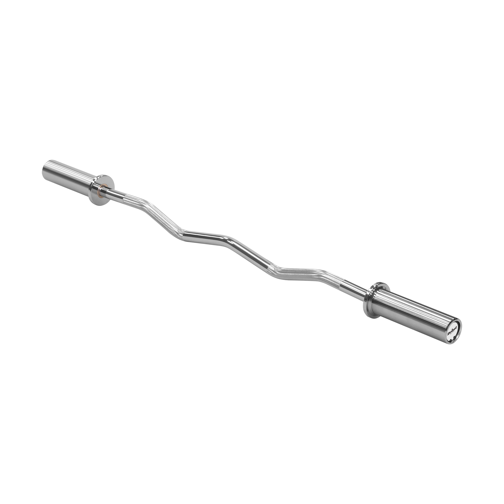 Gryf łamany został zaprojektowany z myślą o optymalnym komforcie podczas ćwiczeń. Dzięki specjalnemu kształtowi, gryf zmniejsza obciążenie nadgarstków, co pozwala na bardziej komfortowy i bezpieczny trening. Wykonany z trwałej, chromowanej stali, zapewnia długowieczność i odporność na korozję. Podwójne radełkowanie na części chwytnej, o długości 2 x 19,5 cm i średnicy 30 mm, zapewnia pewny uchwyt, minimalizując ryzyko wyślizgnięcia się gryfu z rąk.