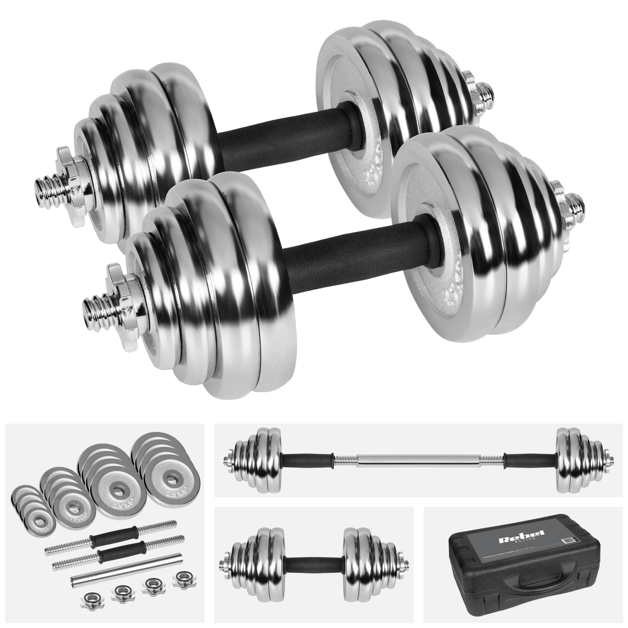 Specification: Hantle żeliwne chromowane z gryfem zestaw 30kg Rebel solidne regulowane