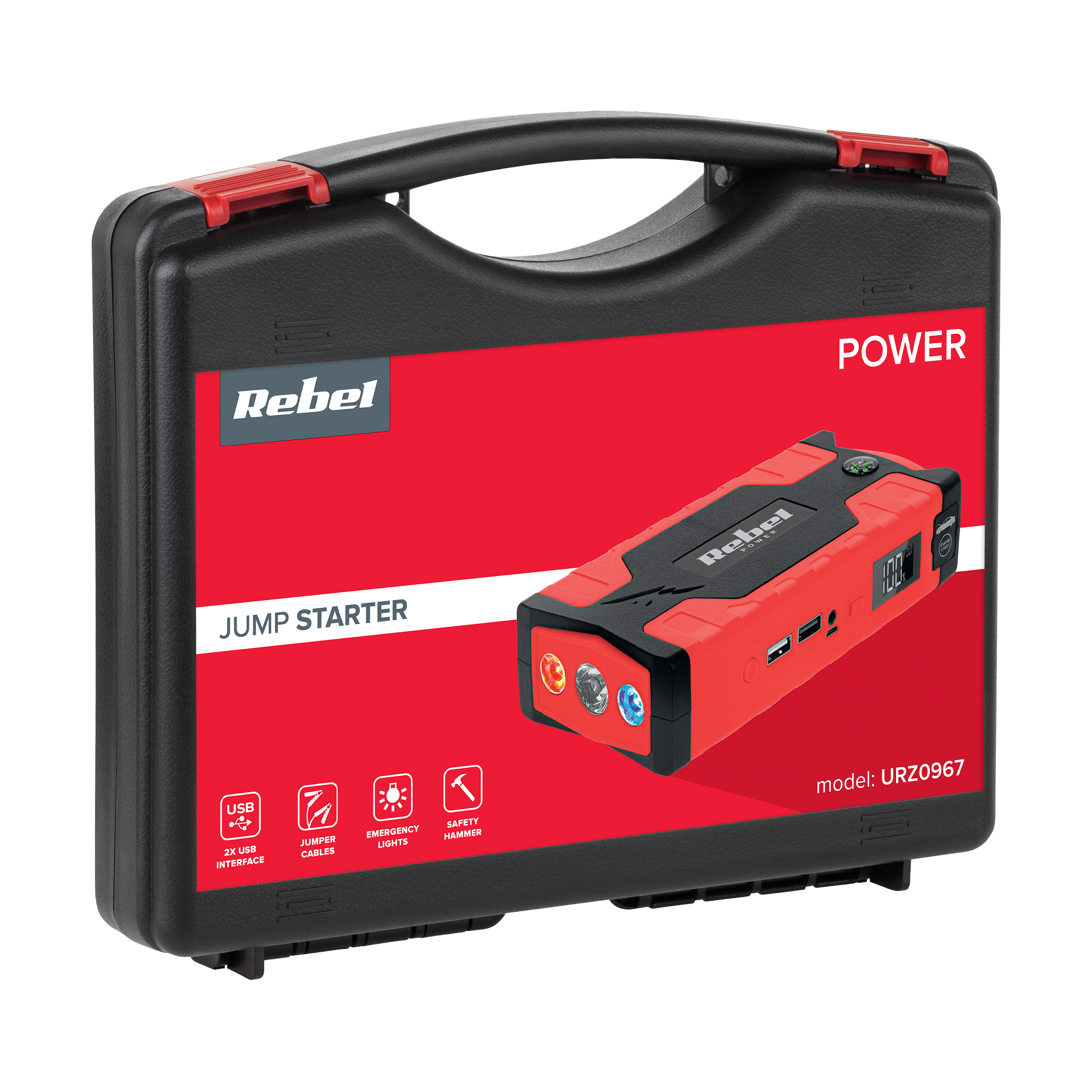 Jump starter Rebel sprowadzi się w każdych warunkach pogodowych. Nie straszne mu mroźne dni, gdy temperatura dochodzi do -50°C, ani letnie upały – urządzenie radzi sobie w temperaturze do +65°C. Urządzenie wraz z wyposażeniem spakowane zostało do niewielkiej walizki, która nie zajmuje dużo miejsca w bagażniku.