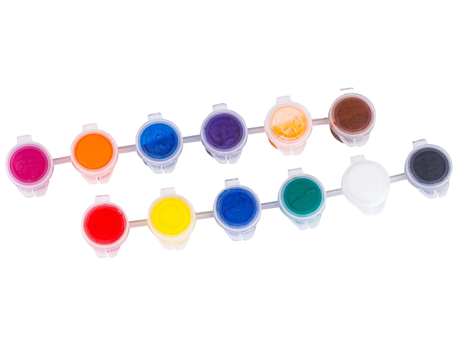 • 12 kolorowych farbek z pędzelkami – użyj ich do ozdobienia wytoczonych na kole przedmiotów,