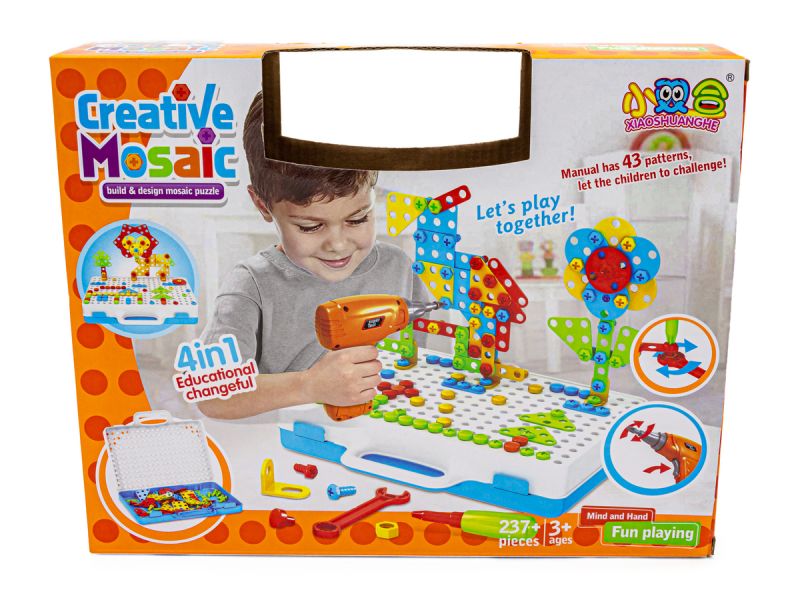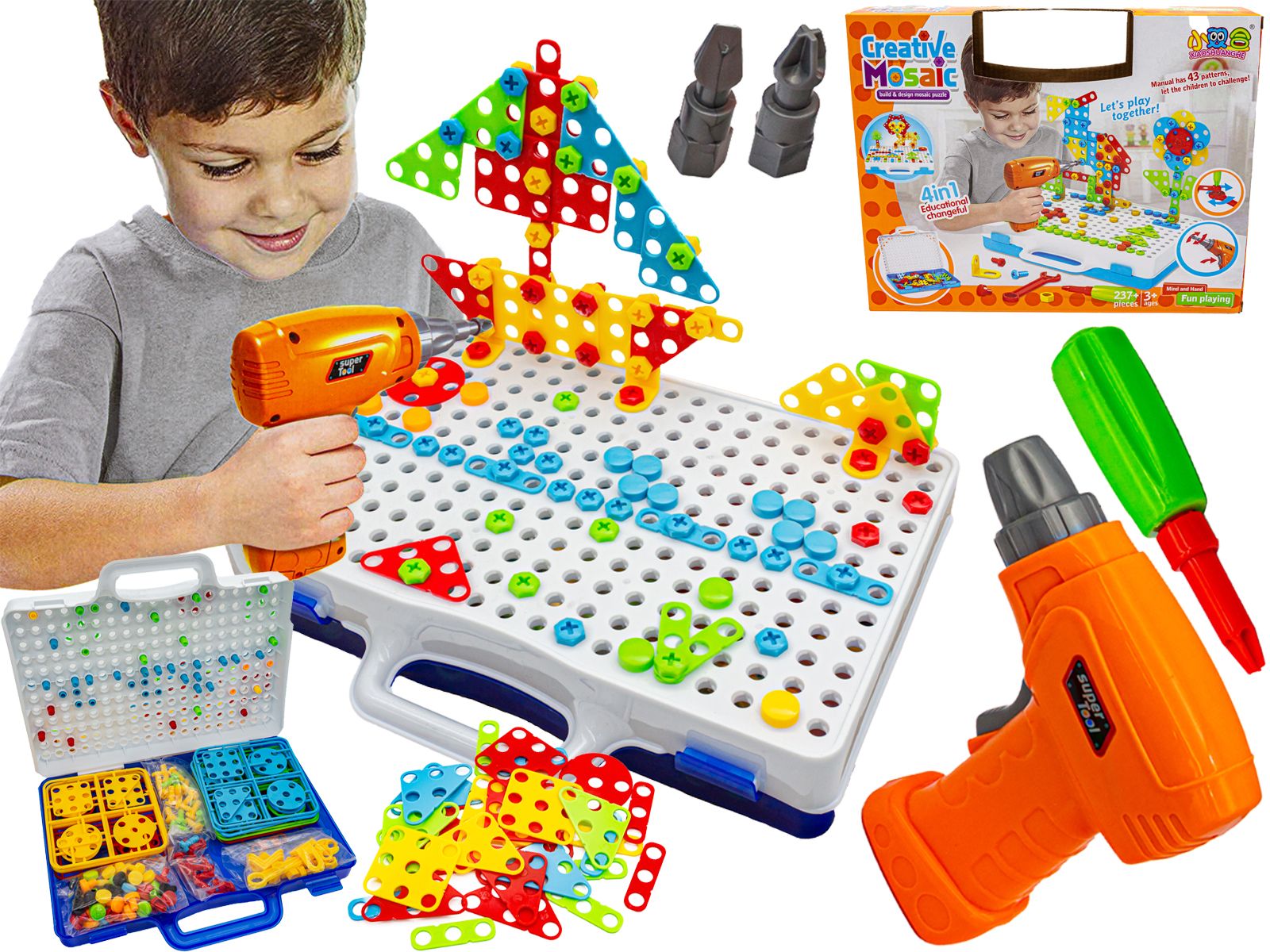 Specification: Kreatywna Mozaika, Układanka, Klocki, Wkrętarka Śrubki W Walizce 237 El