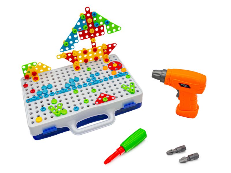 Kreatywna Mozaika, Układanka, Klocki, Wkrętarka Śrubki W Walizce 237 El