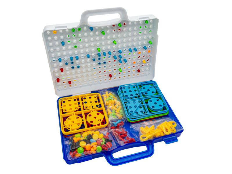 Przykręcanie kolorowych śrubek wymaga precyzji ruchów ręki – zabawka usprawni zdolności manualne. Poszczególne elementy można wykorzystać do nauki kolorów. Wszystko znajduje się w wygodnej i praktycznej walizce z zamknięciem. To pozwala utrzymać ład i porządek po zakończonej zabawie.
