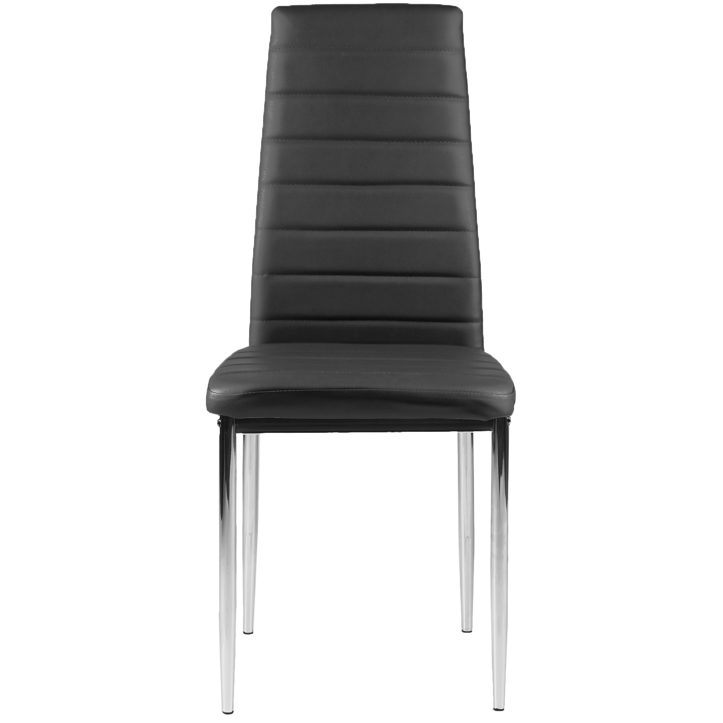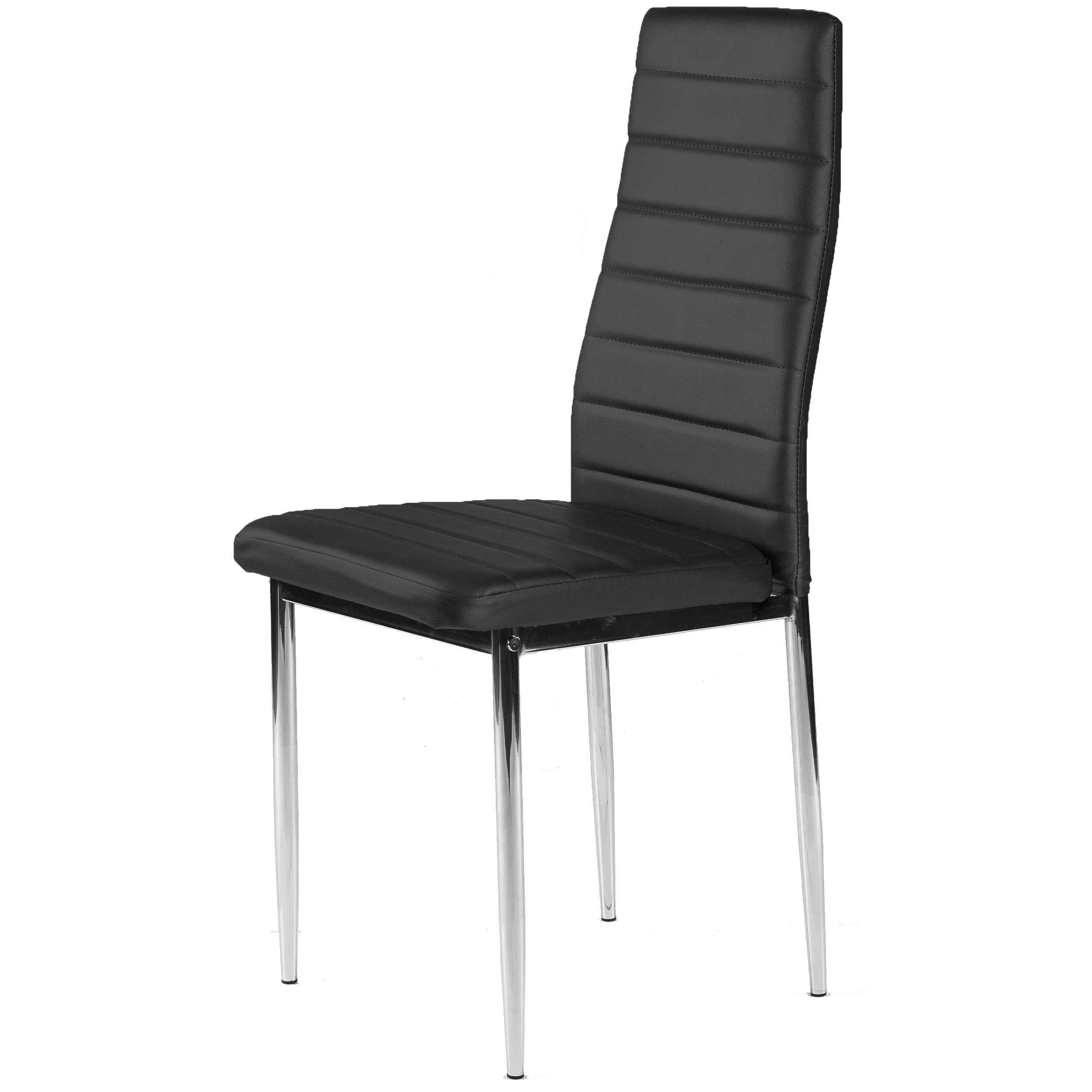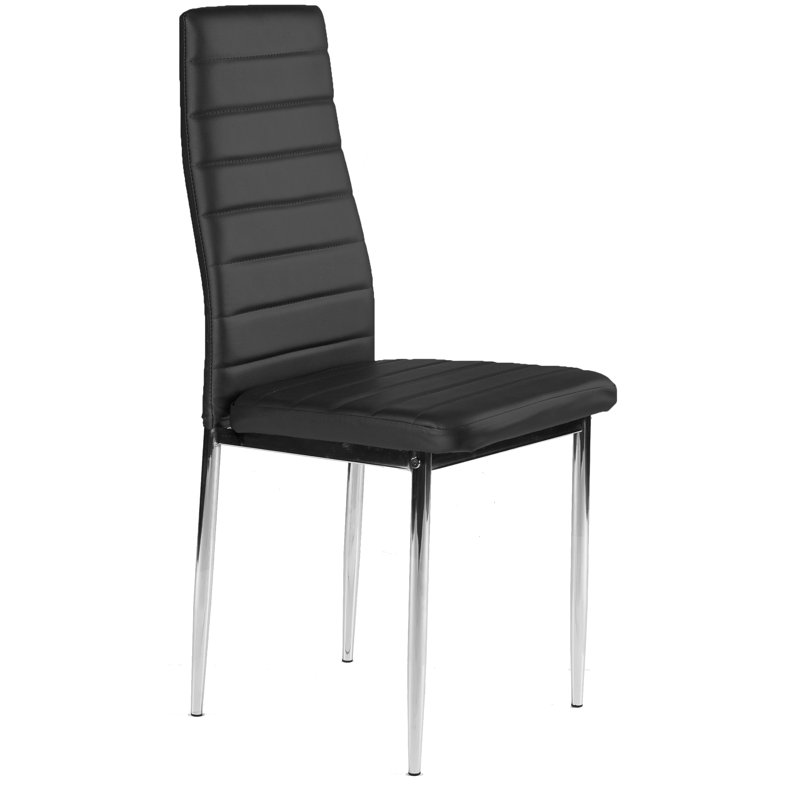 Krzesła będą świetnie współgrać z rodzinnym stołem w Twojej jadalni i kuchni. Czarne poszycie wykonane z miękkiej ekoskóry i chromowane nogi tworzą ciekawe połączenie, które sprawia, że krzesła będą świetnie wyglądać i wpasują się w każdy rodzaj wnętrza dodając mu wyjątkowego charakteru.