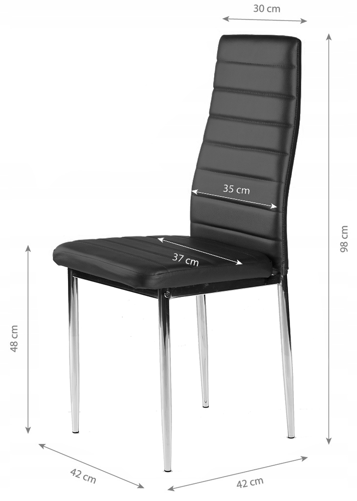 - DESIGN – czarna kolorystyka poszycia i chromowane nogi sprawiają, że krzesła prezentują się bardzo elegancko i nowocześnie.