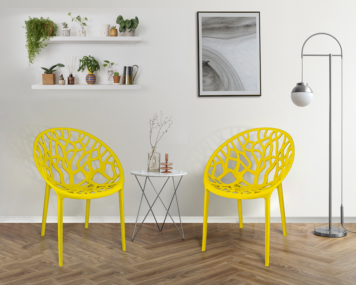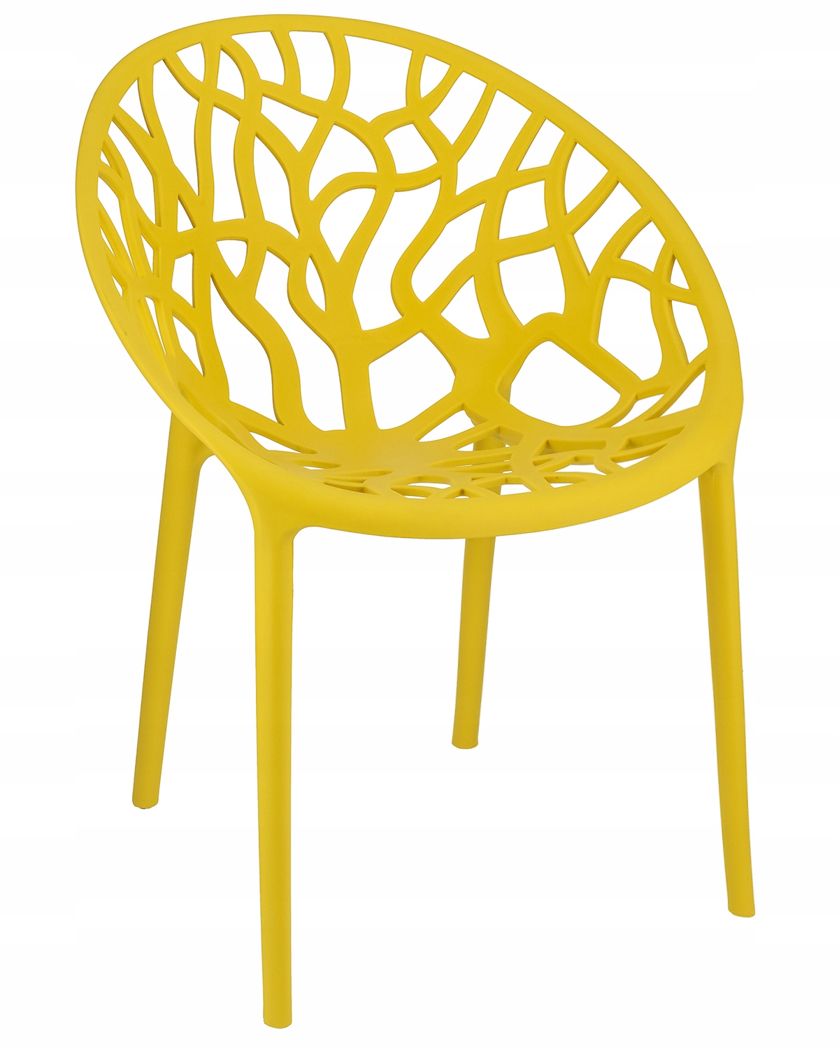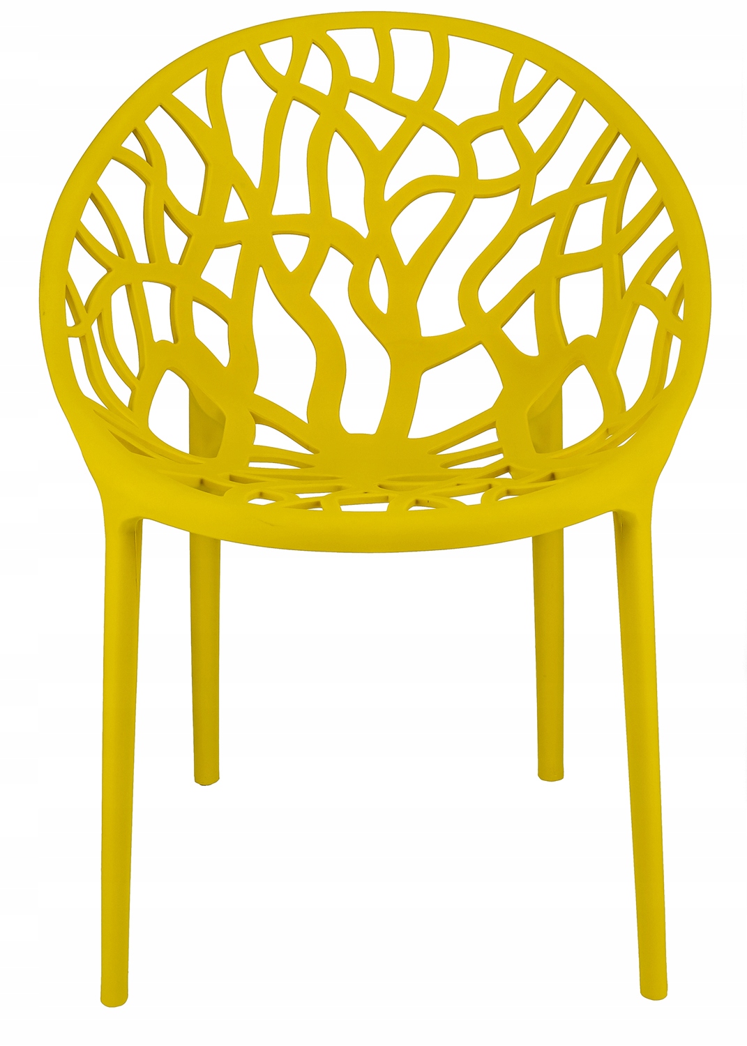 ➡️ Obłe siedzisko wykonane z polipropylenu ze wzorem rozgałęzionego drzewa zapewnia wygodę oraz stylowy dodatek do wnętrza. Grube, masywne nogi pasują do całości i zapewniają idalną stabilność.