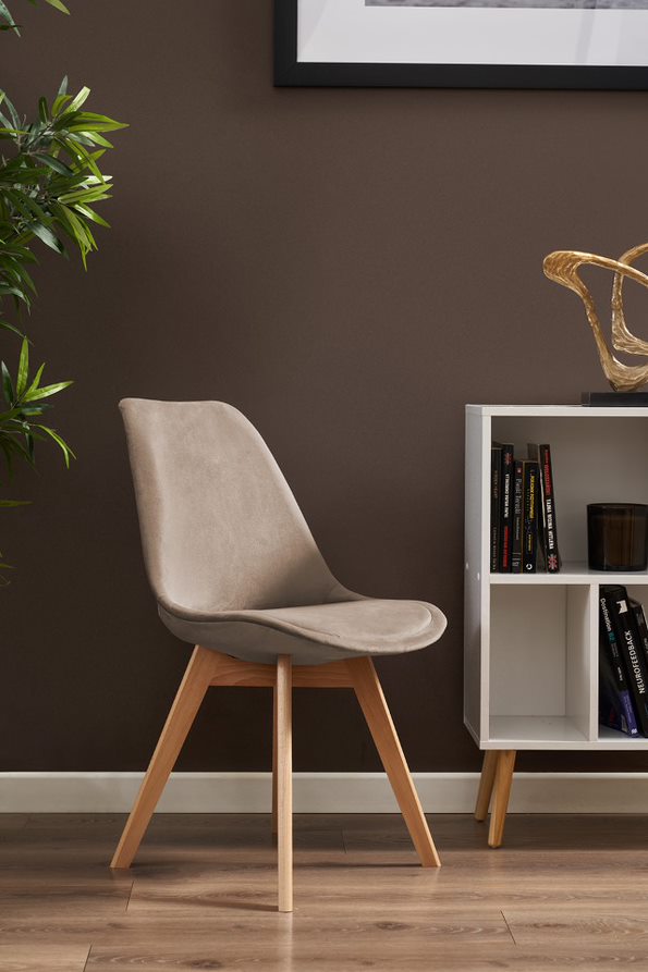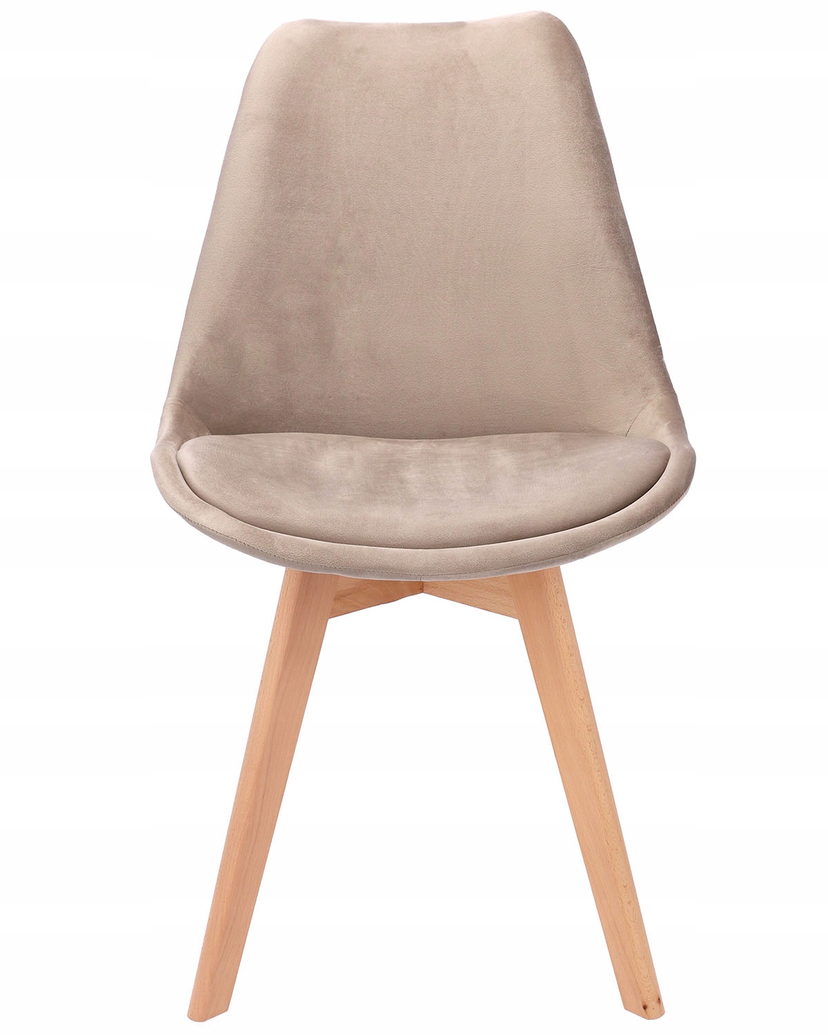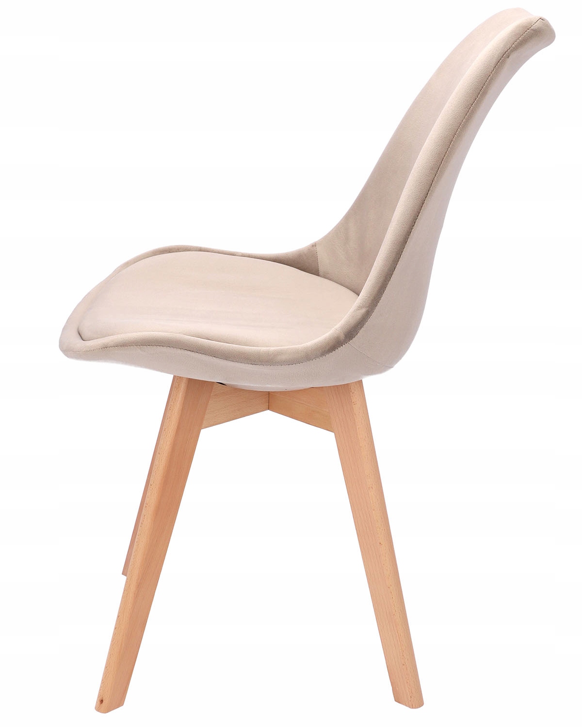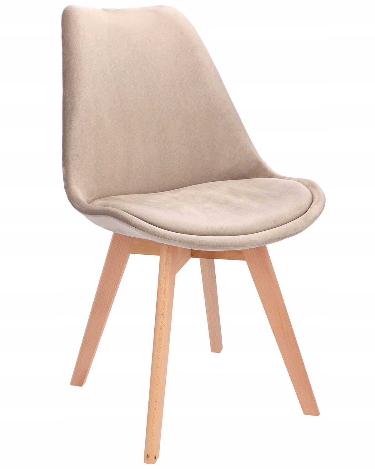 ➡️ Posiada idealnie wyprofilowane oparcie pokryte welurem, które w połączeniu z miękką poduszką umieszczoną na siedzisku zapewnia dużą wygodę. Drewniane nogi wykonane z buku o jego jasnym odcieniu zapewnianą stabilność oraz wytrzymałość. Krzesło jest bardzo praktyczne i funkcjonalne.