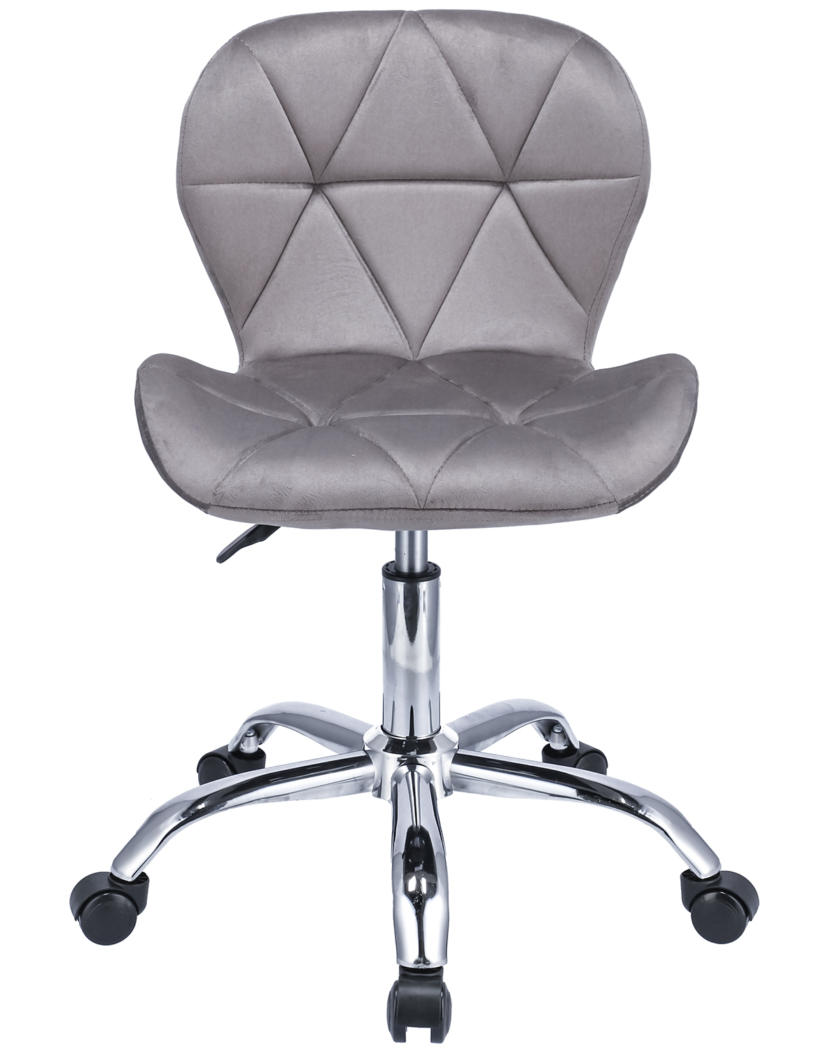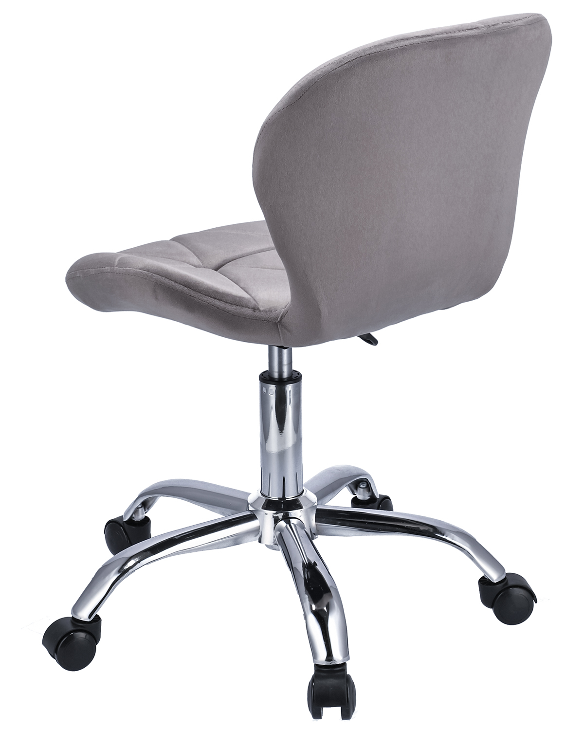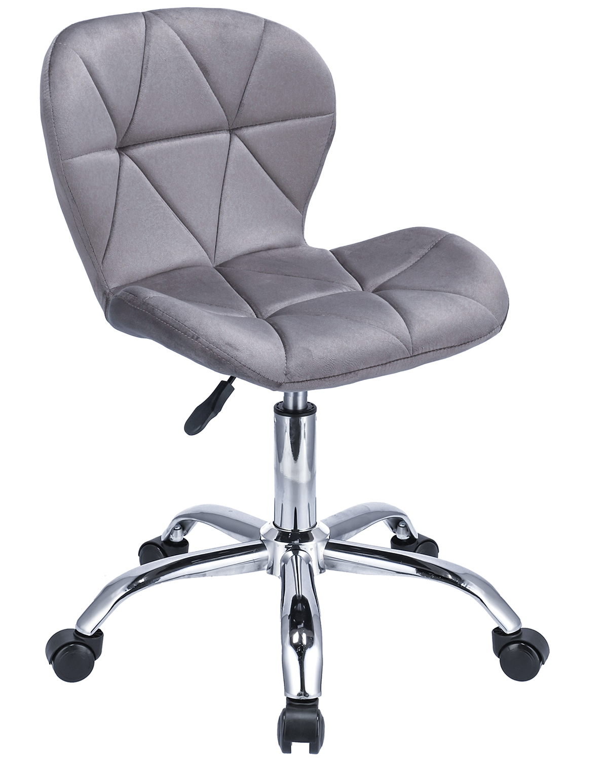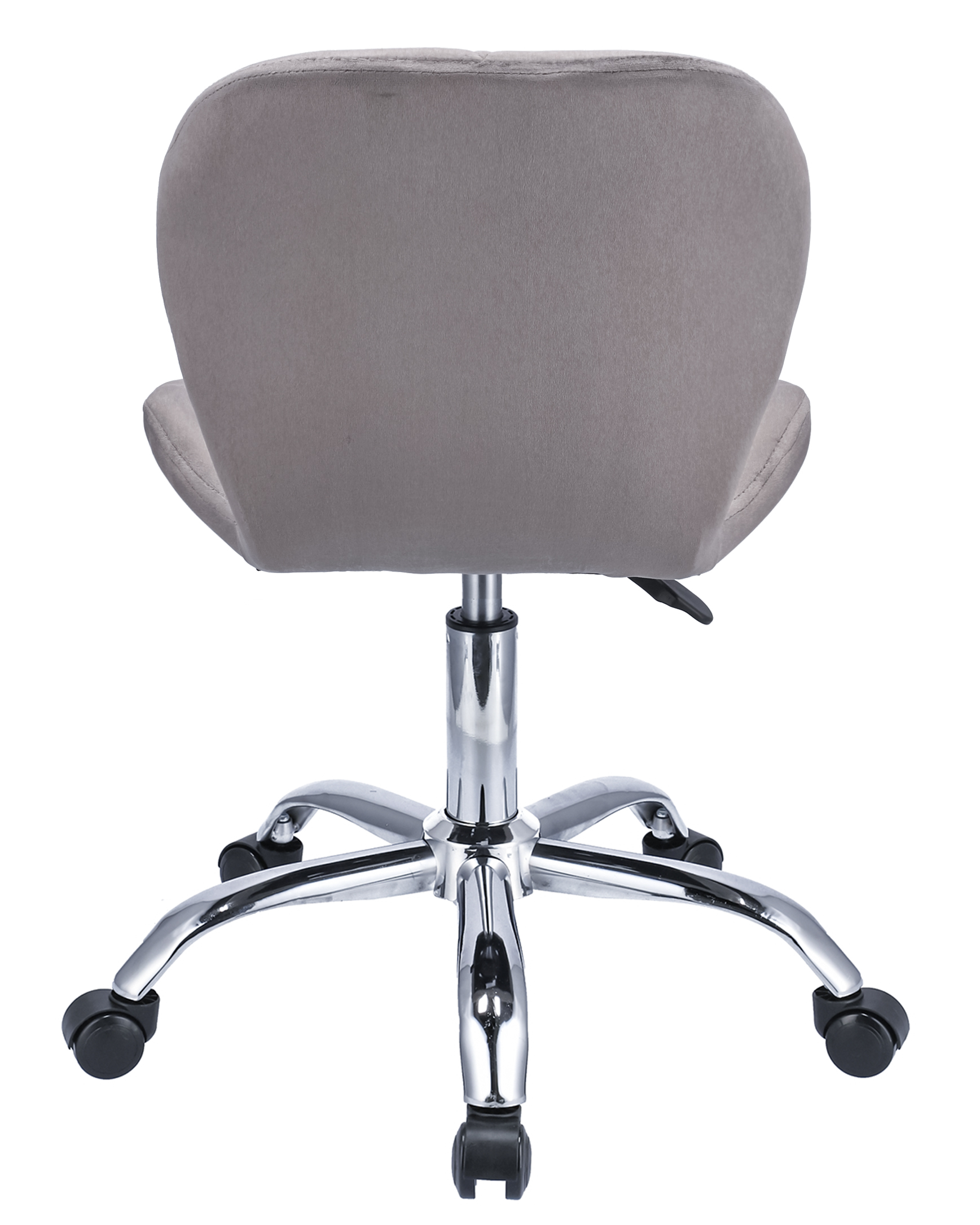Krzesło posiada tapicerowane welurem siedzisko z ciekawymi, wyciętymi kształtami po jego bokach. Pięcioramienna podstawa zakończona niewielkimi kółkami daje dużą stabilność oraz zabezpiecza powierzchnię przed zarysowaniem. Krzesło posiada siłownik, który pozwala dostosować wysokość siedzenia do wymaganych potrzeb.
