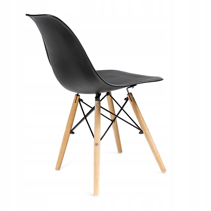 ➡️ Siedzisko to idealnie wyprofilowany polipropylen, a nogi wykonane zostały z naturalnego, litego drewna bukowego – zapewniają wytrzymałość i stabilność podczas używania, dodatkowo czarne łączenia wzmacniają całą ramę i są jednocześnie dekoracją.