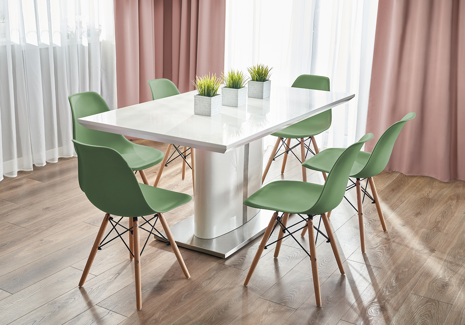 ➡️ Siedzisko to idealnie wyprofilowany polipropylen, a nogi wykonane zostały z naturalnego, litego drewna bukowego – zapewniają wytrzymałość i stabilność podczas używania, dodatkowo czarne łączenia wzmacniają całą ramę i są jednocześnie dekoracją.