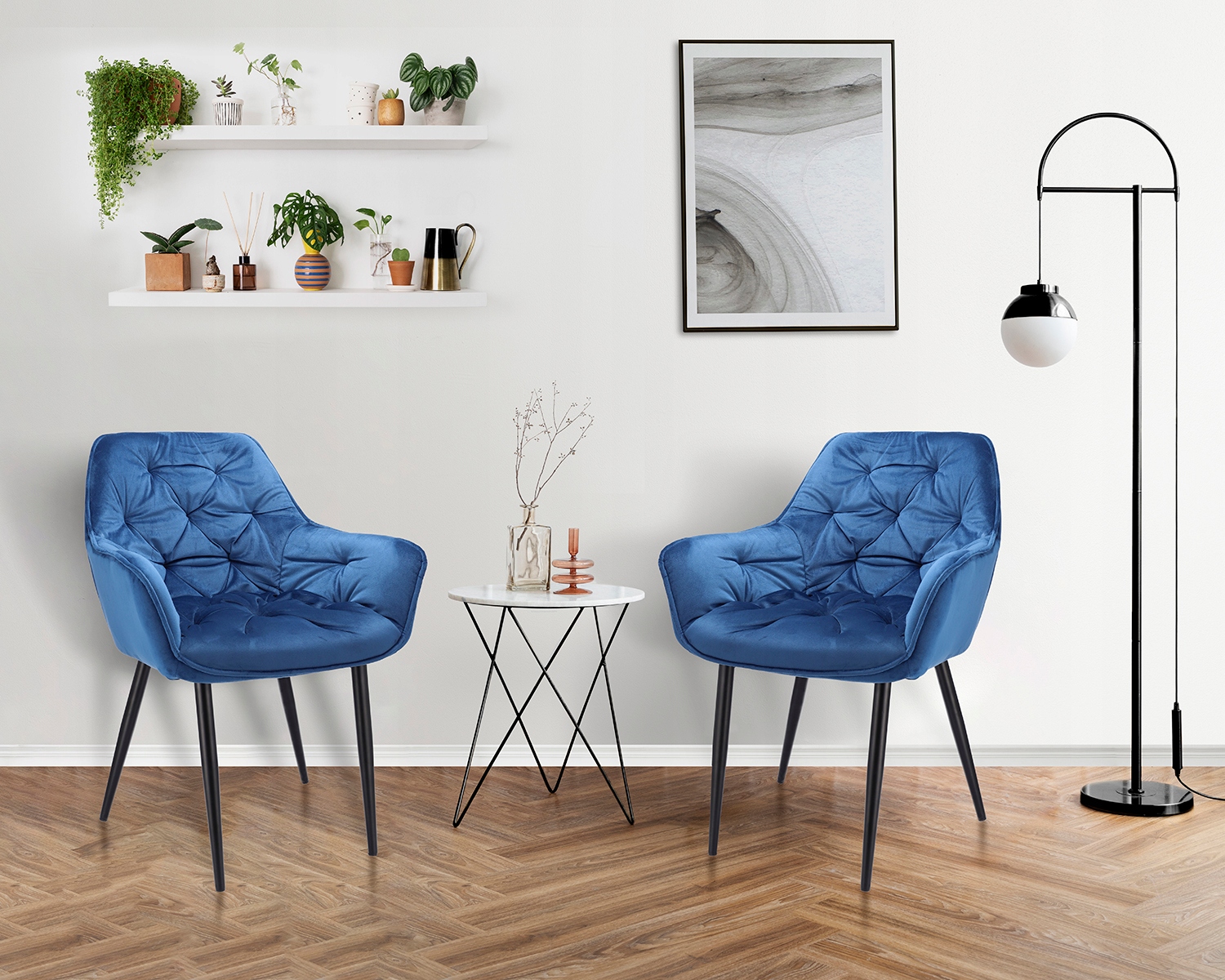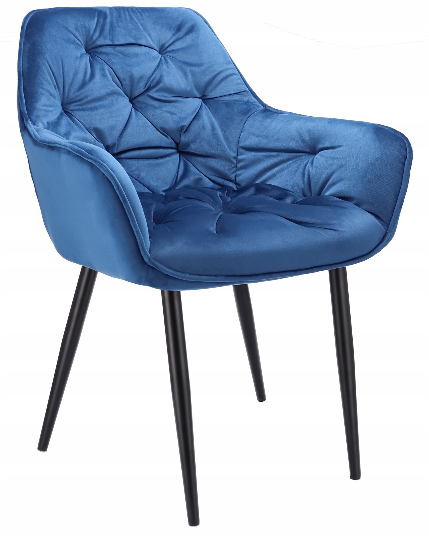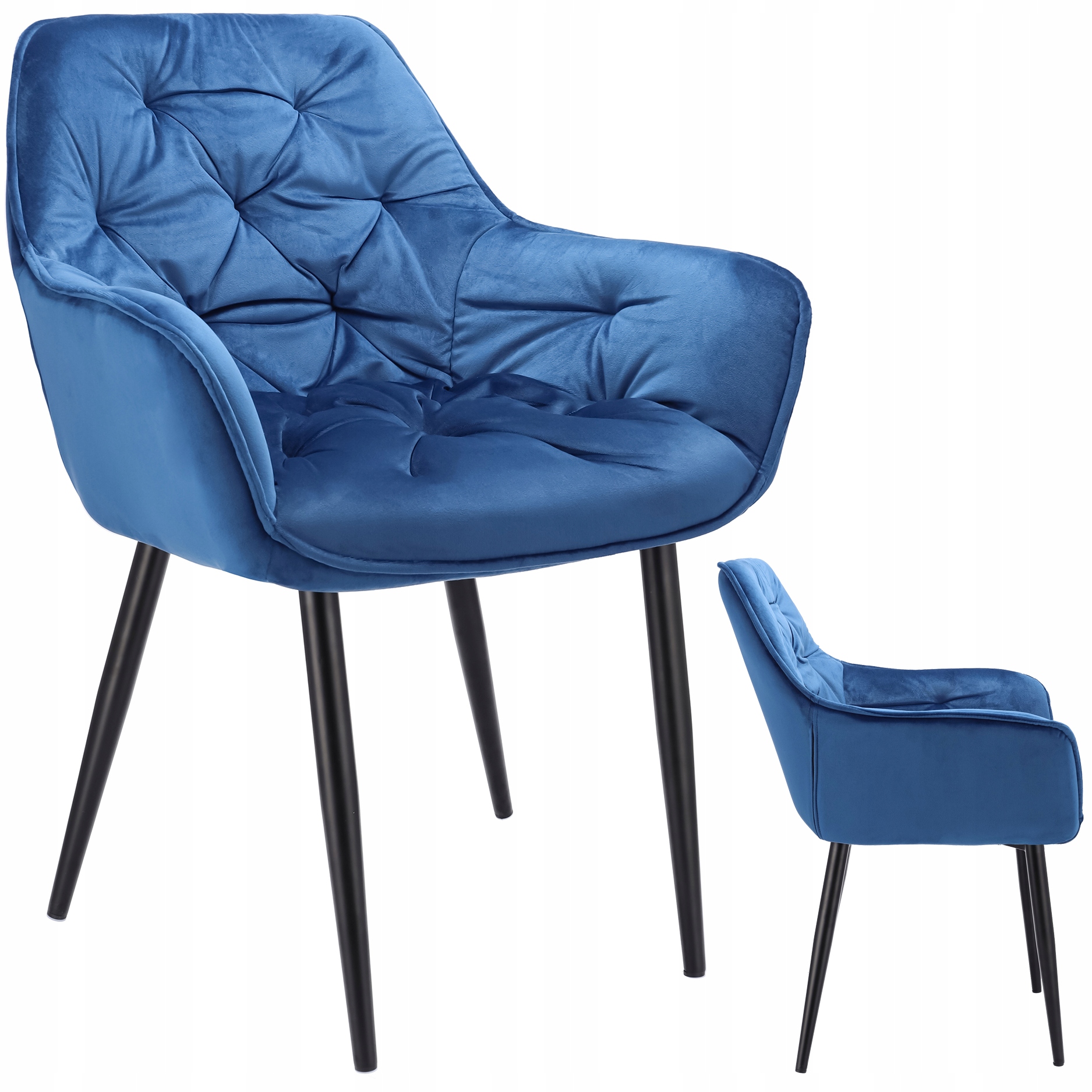 ➡️ Solidne, welurowe krzesło wyposażone zostało w miękkie siedzisko oraz wysokie oparcie z ozdobnymi pikowaniami. Całość wygląda lekko za sprawą smukłych czarnych nóżek, które nadają wizualnej lekkości, a zarazem zapewniają idealną stabilność. Wysokość oparcia, podłokietniki oraz jego miękkość sprawia, że fotel jest niesamowicie wygodny.