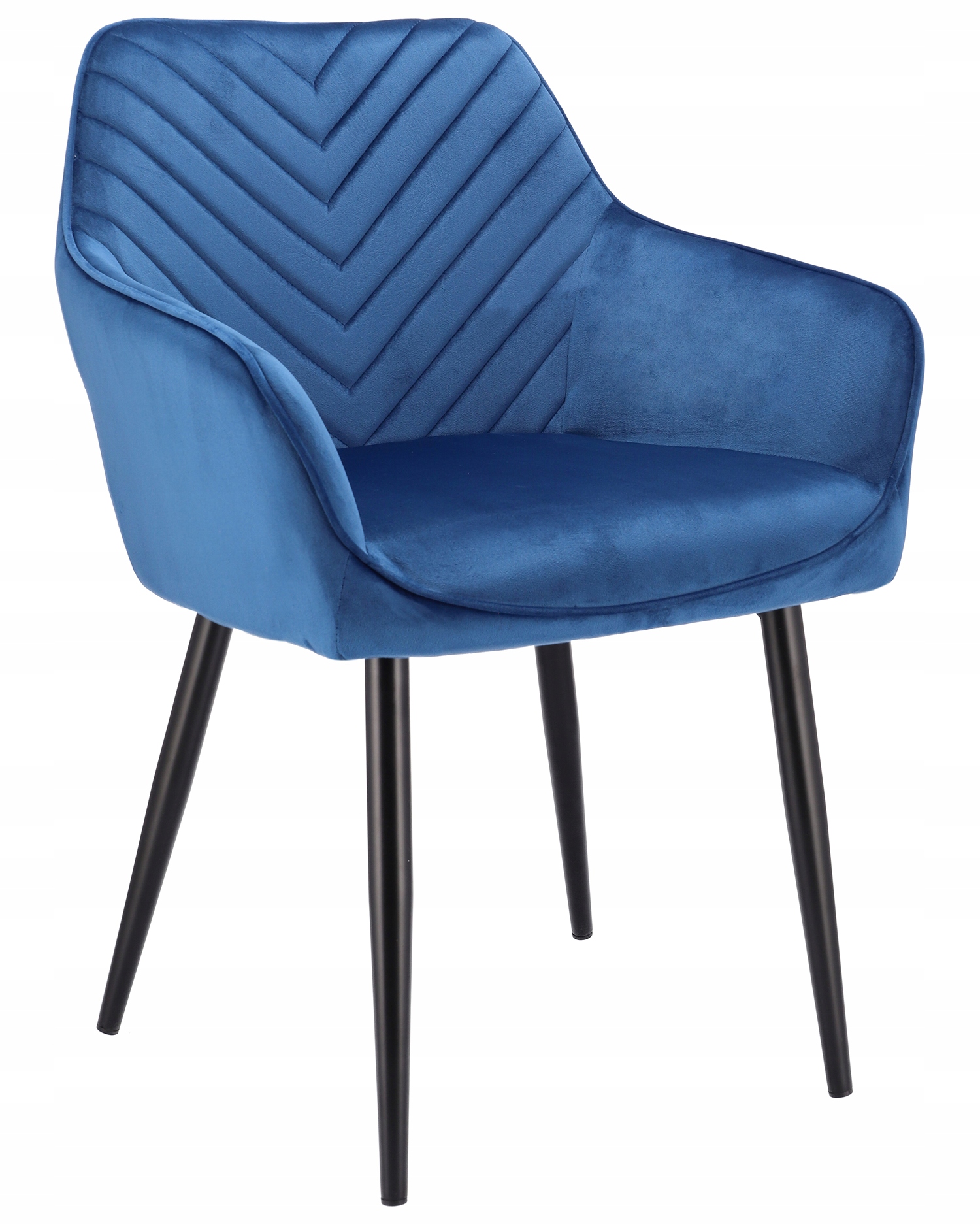 ➡️ Solidne, welurowe krzesło wyposażone zostało w miękkie siedzisko oraz wysokie oparcie z ozdobnymi pikowaniami we wzór jodełki. Całość wygląda lekko za sprawą smukłych czarnych nóżek, które nadają wizualnej lekkości, a zarazem zapewniają idealną stabilność.