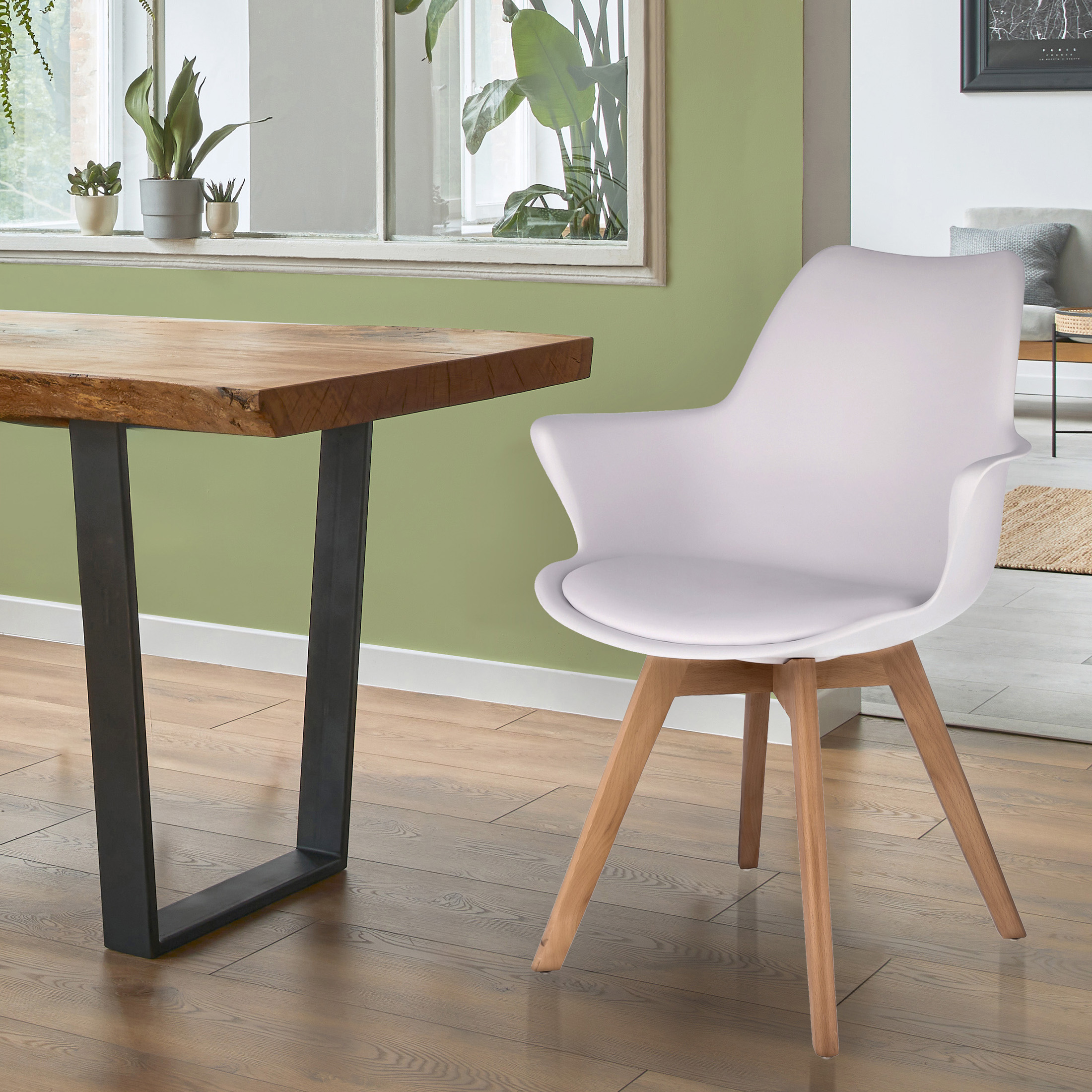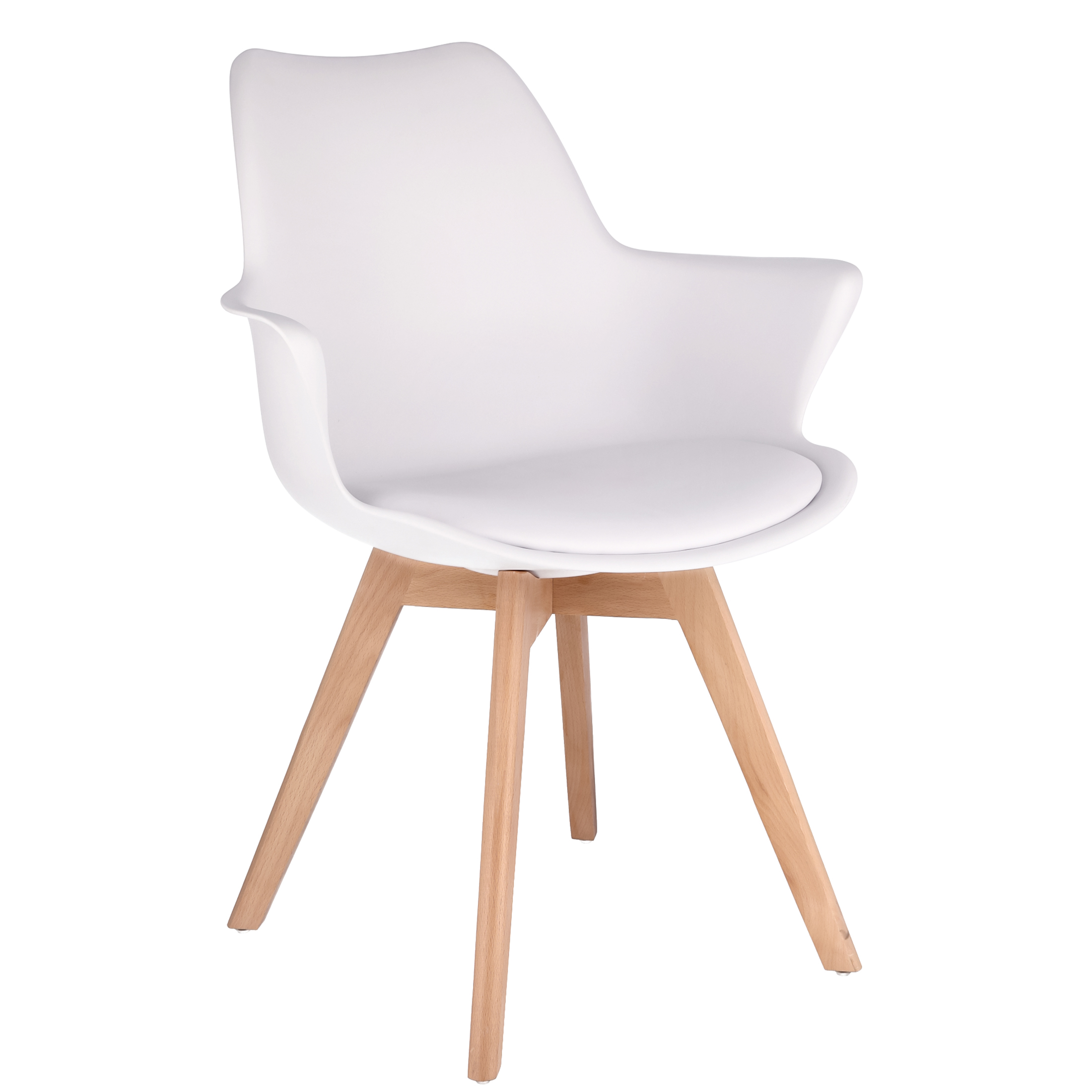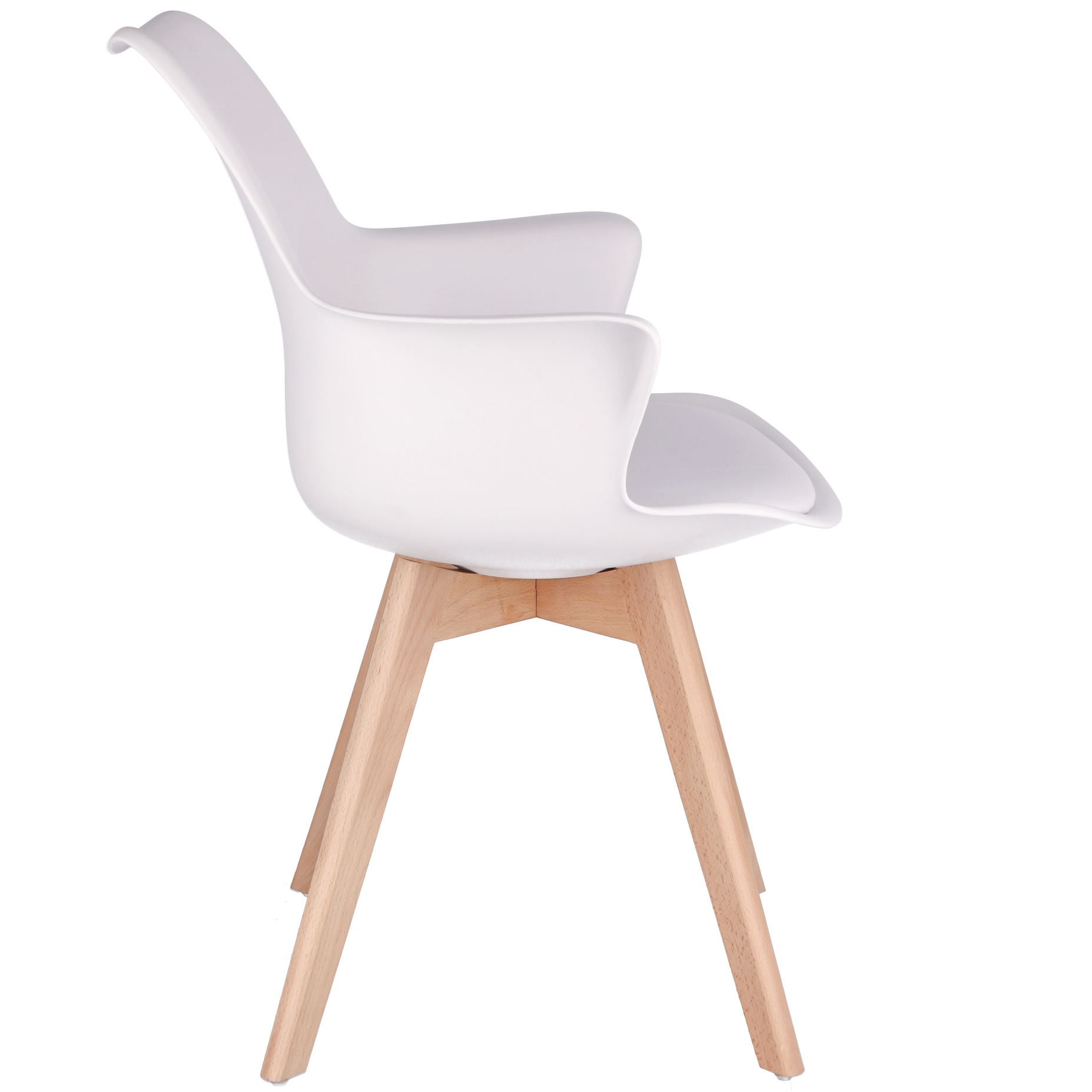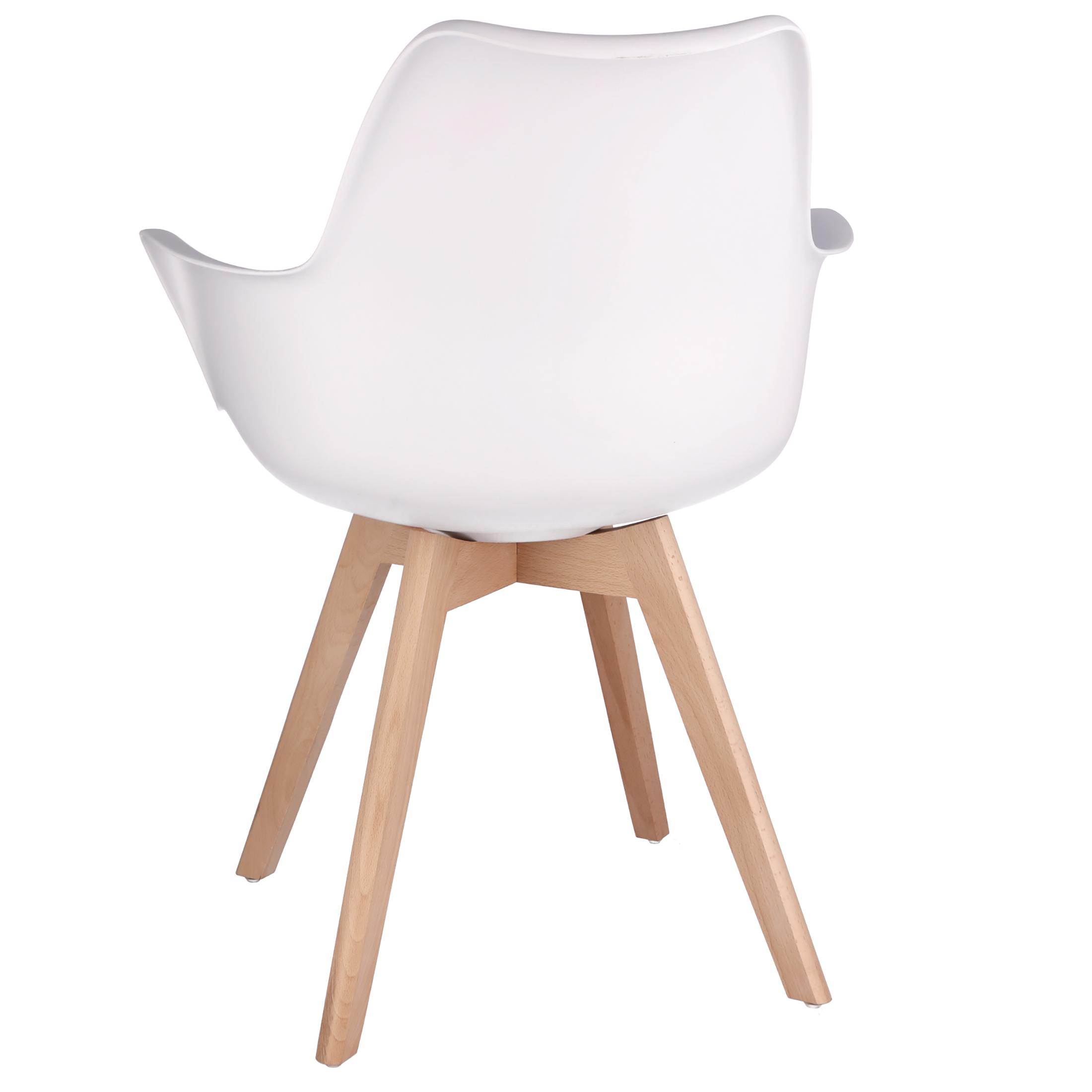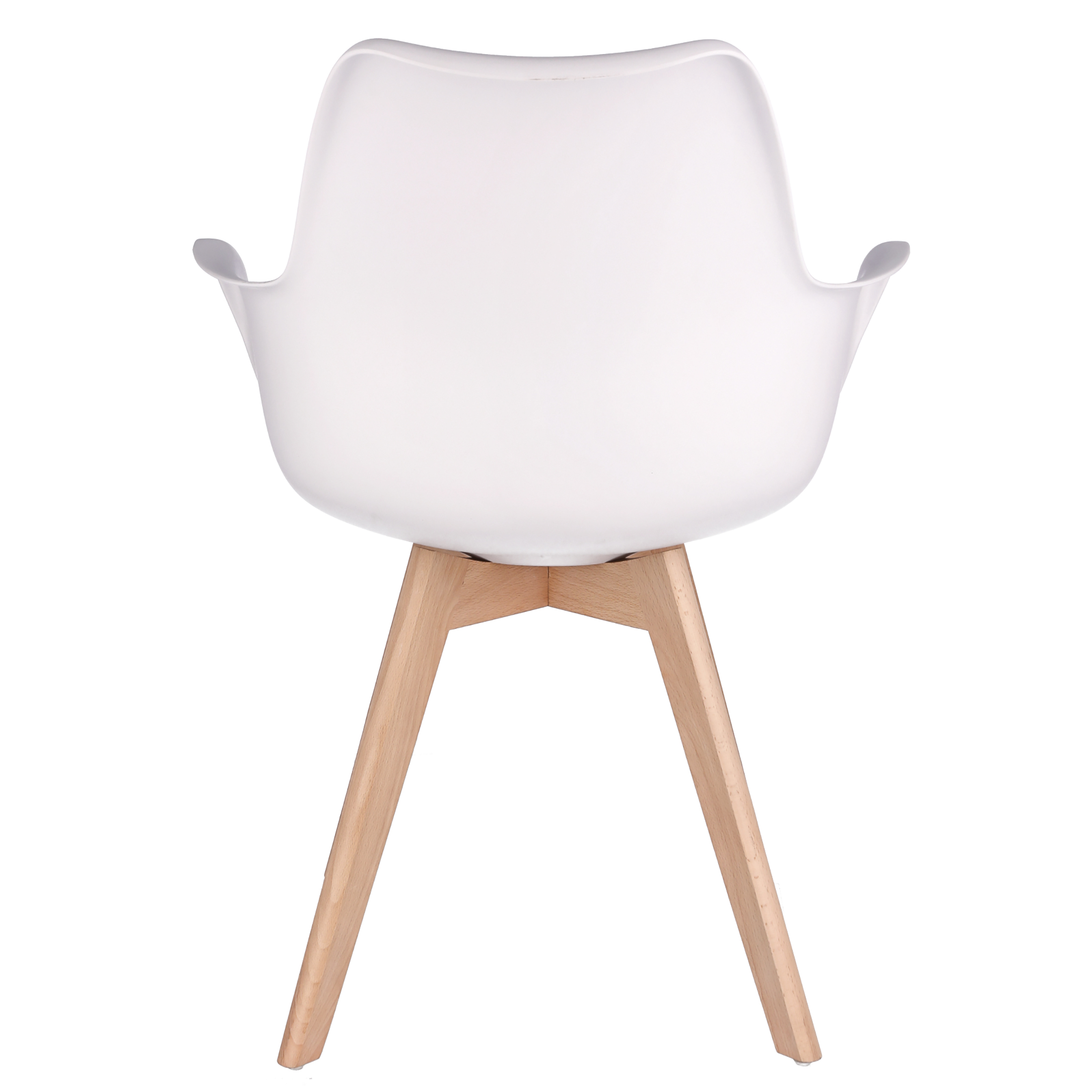 ➡️ Posiada wyprofilowane oparcie, które w połączeniu z miękką poduszką umieszczoną na siedzisku zapewnia dużą wygodę. Wyróżnia się poprzez jego unikatową cechę, wymodelowane podłokietniki pozwalające na wygodne i komfortowe użytkowanie. Drewniane nogi wykonane są z buku, dzięki czemu zapewniają stabilność oraz trwałość użytkowania.