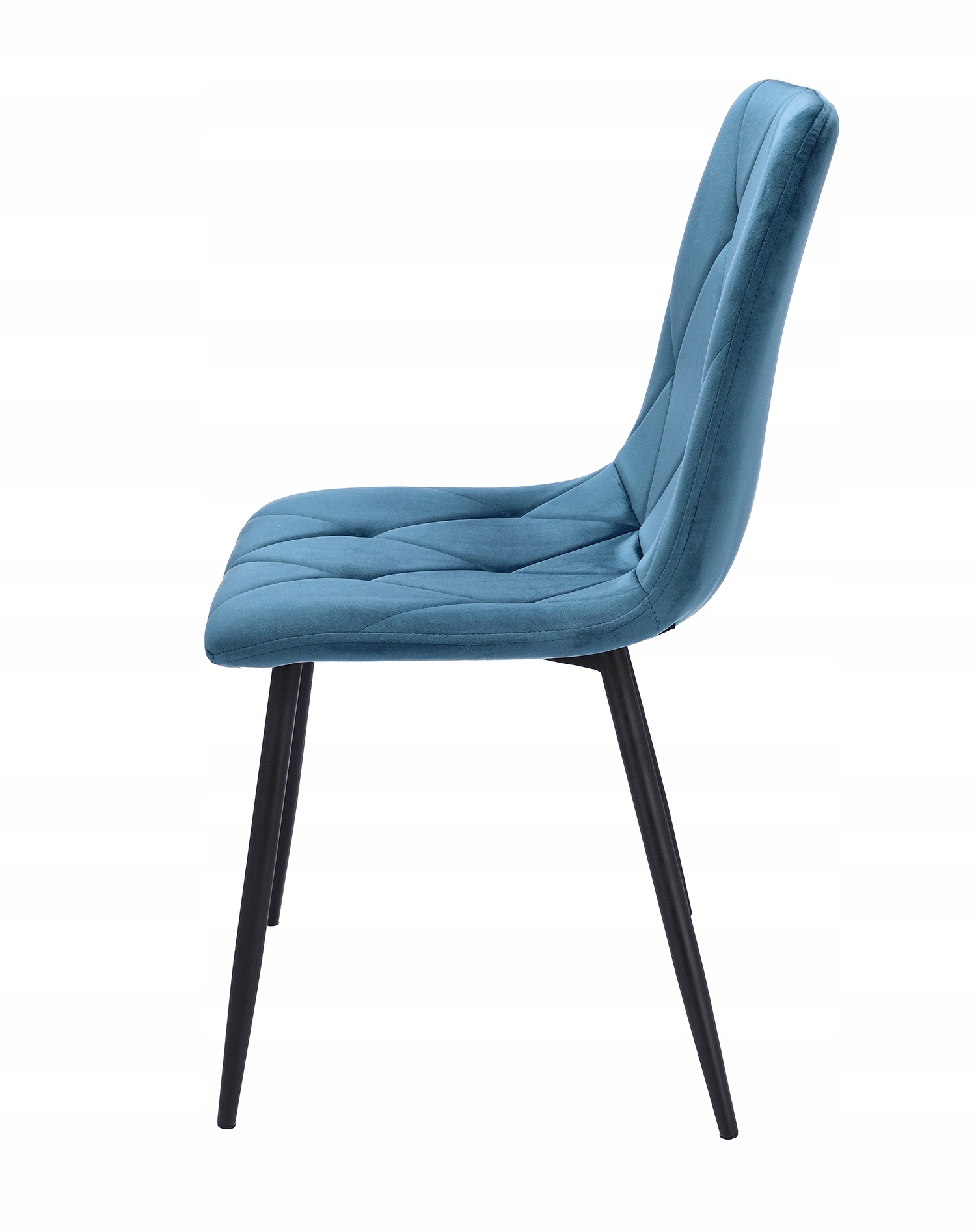 ➡️ Krzesło tapicerowane jest welurem, a po wewnętrznej stronie pikowane regularnymi przeszyciami w romby. Wysokie i smukłe nóżki w czarnym kolorze wyglądają bardzo szykownie oraz gwarantują idealną stabilność.