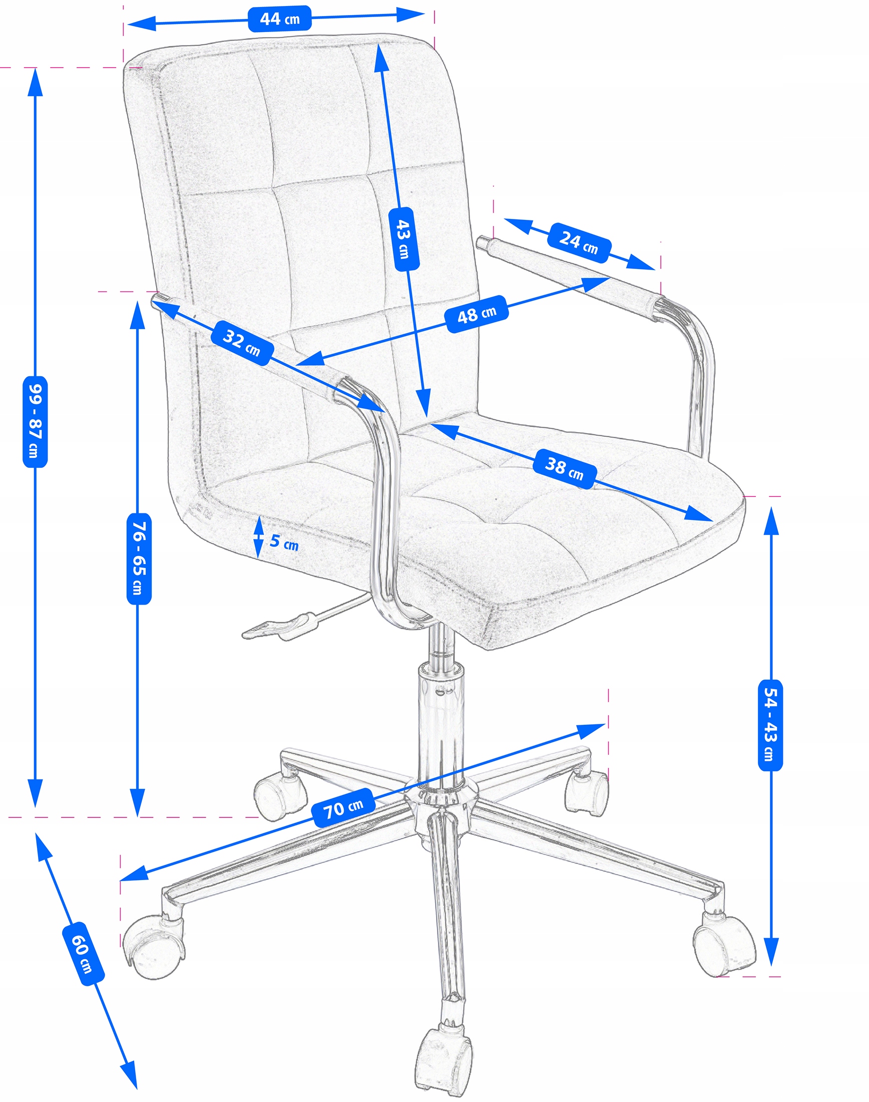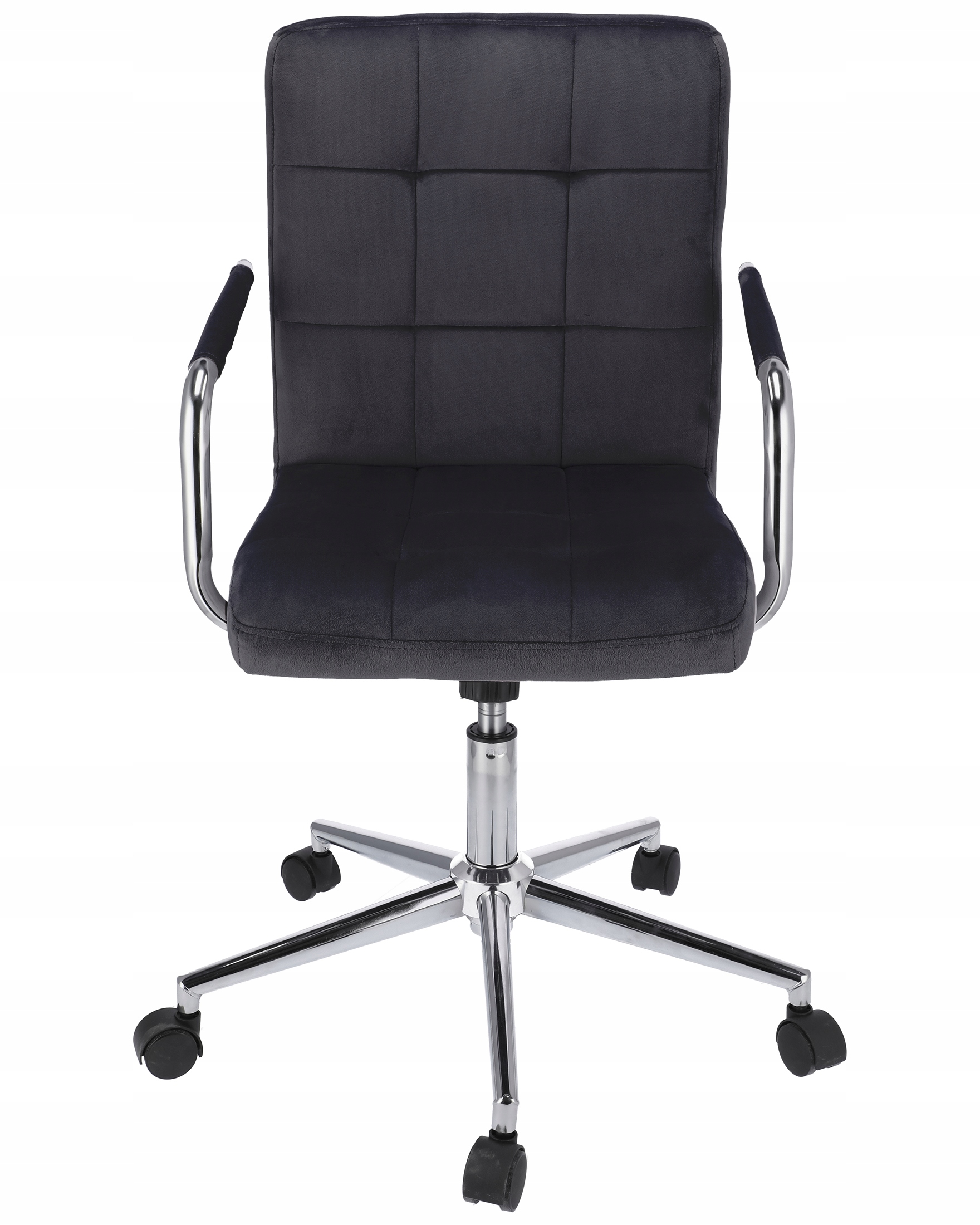 ➡️ Krzesło posiada tapicerowane welurem siedzisko z pikowaniem w kwadraty. Pięcioramienna podstawa zakończona niewielkimi kółkami daje dużą stabilność oraz zabezpiecza powierzchnię przed zarysowaniem. Krzesło posiada siłownik, który pozwala dostosować wysokość siedzenia do wymaganych potrzeb.