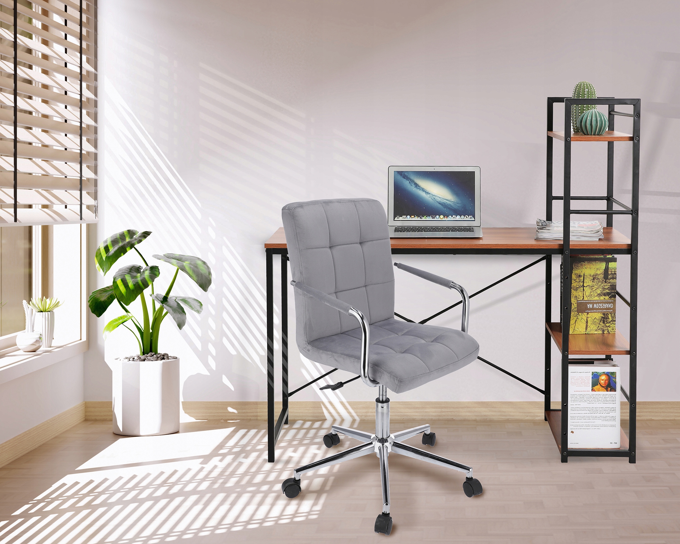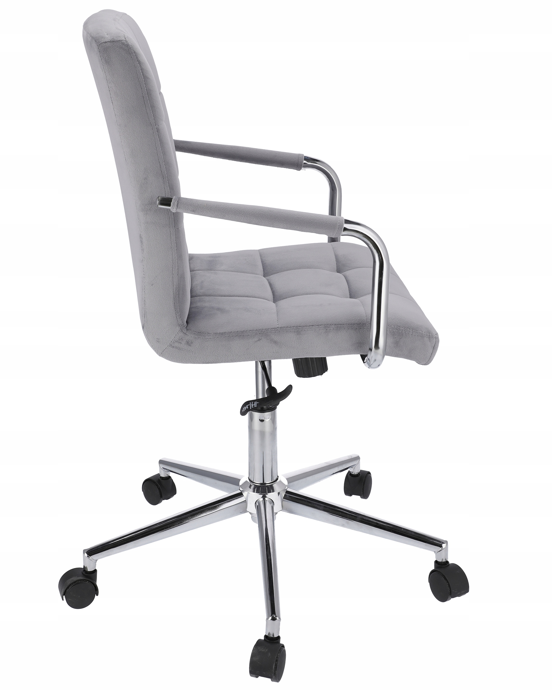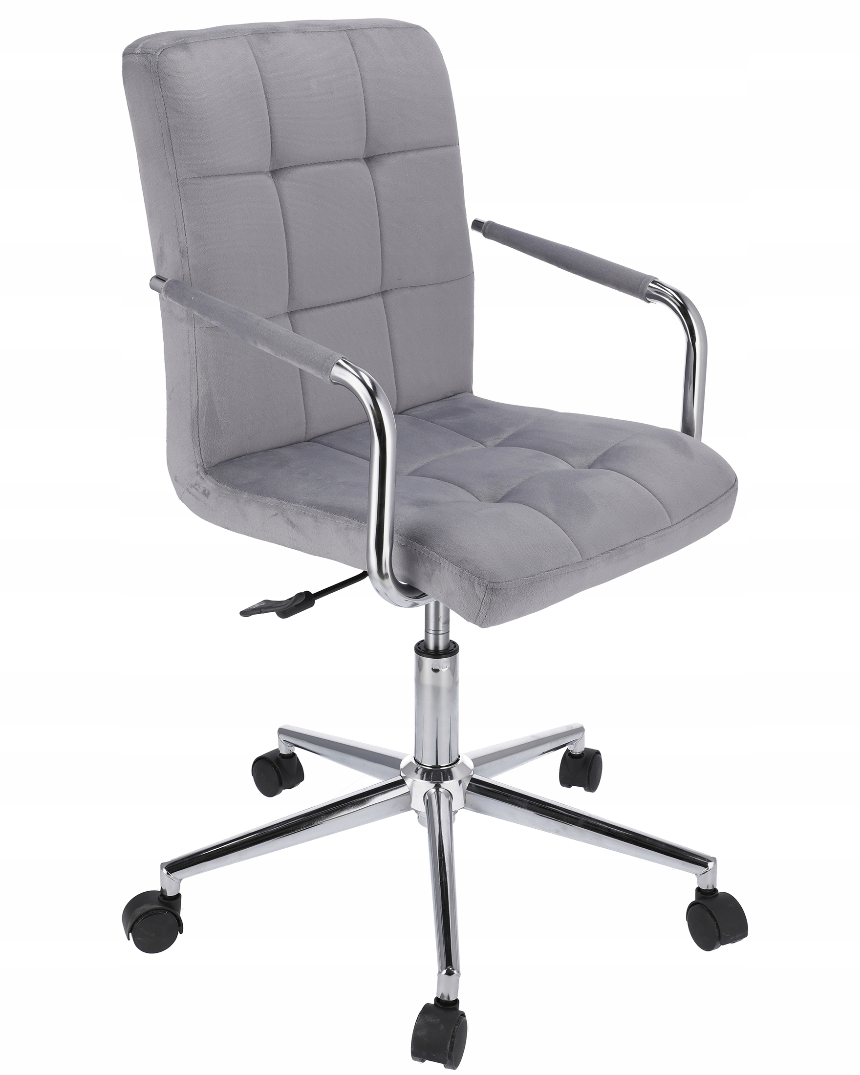 ➡️ Krzesło posiada tapicerowane welurem siedzisko z pikowaniem w kwadraty. Pięcioramienna podstawa zakończona niewielkimi kółkami daje dużą stabilność oraz zabezpiecza powierzchnię przed zarysowaniem. Krzesło posiada siłownik, który pozwala dostosować wysokość siedzenia do wymaganych potrzeb.