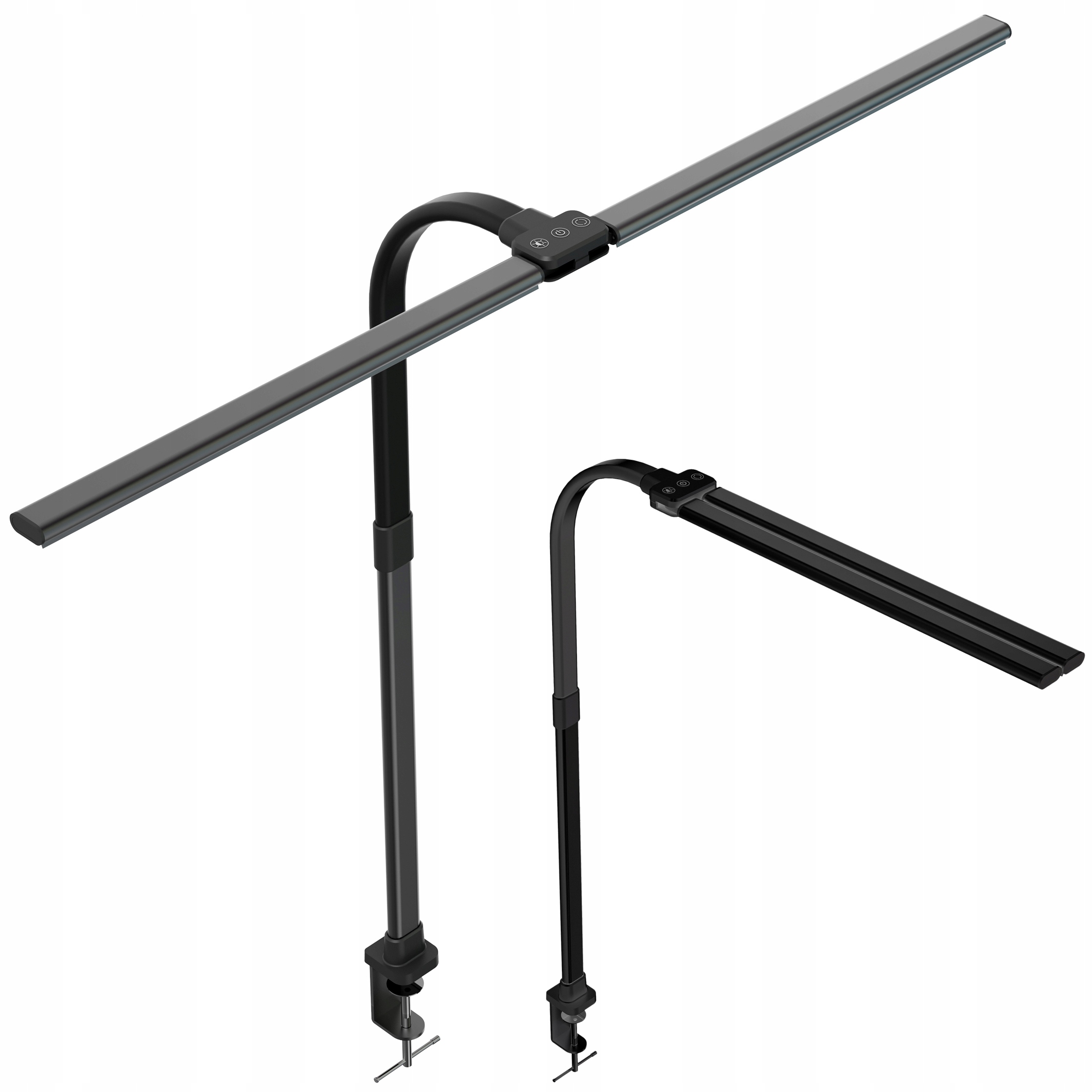 Długość ramion po obu stronach lampy można regulować w zakresie 90 stopni, co umożliwia swobodne dostosowanie kierunku światła do Twoich potrzeb. Lampka posiada zacisk, który ułatwia dokręcenie lampki na przykład do biurka.