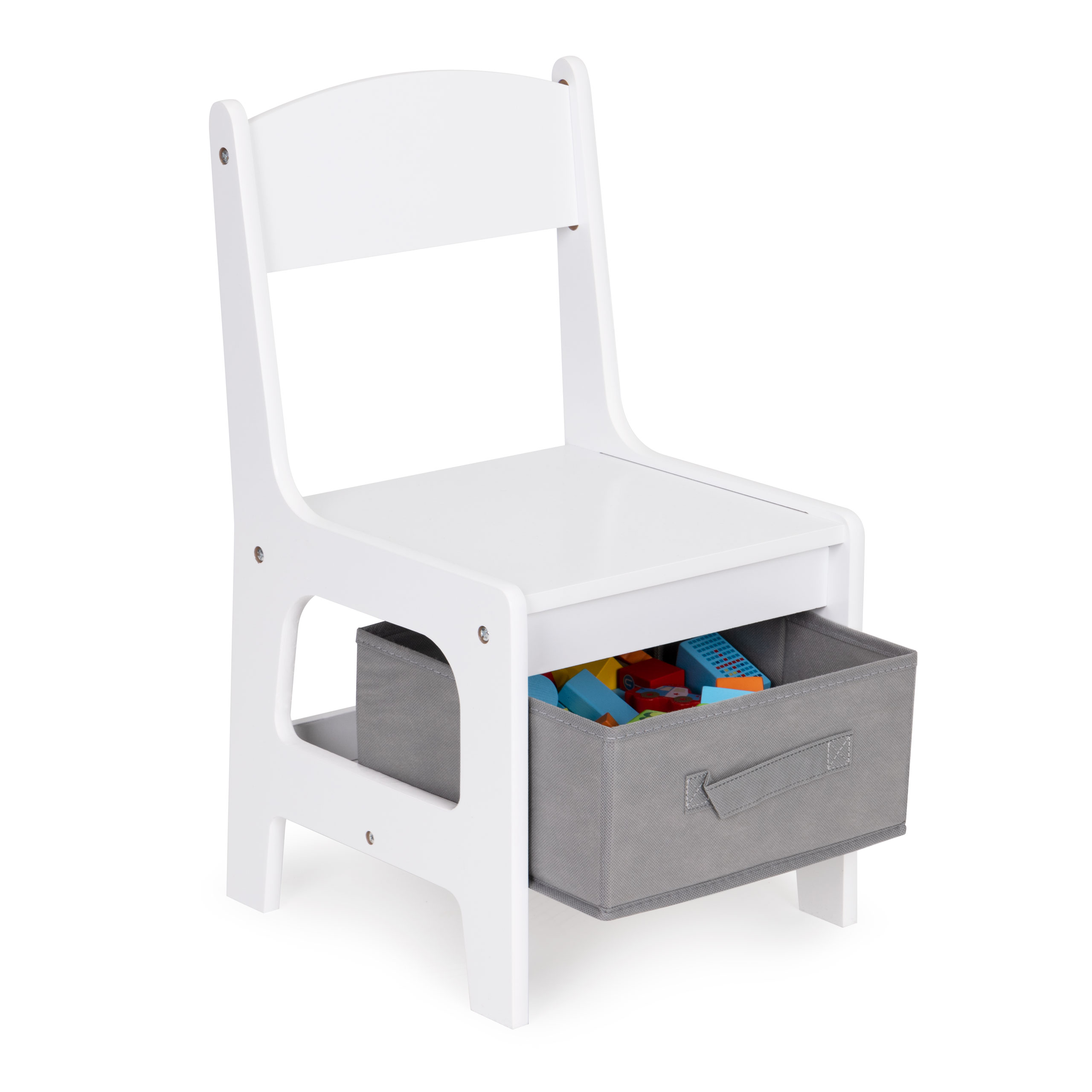 Pod blatem ukryta jest przestrzeń, która pomoże utrzymać porządek i wyrobi nawyk sprzątania po skończonej zabawie. Schowek pomieści klocki, mniejsze zabawki i inne drobiazgi które warto mieć pod ręką.