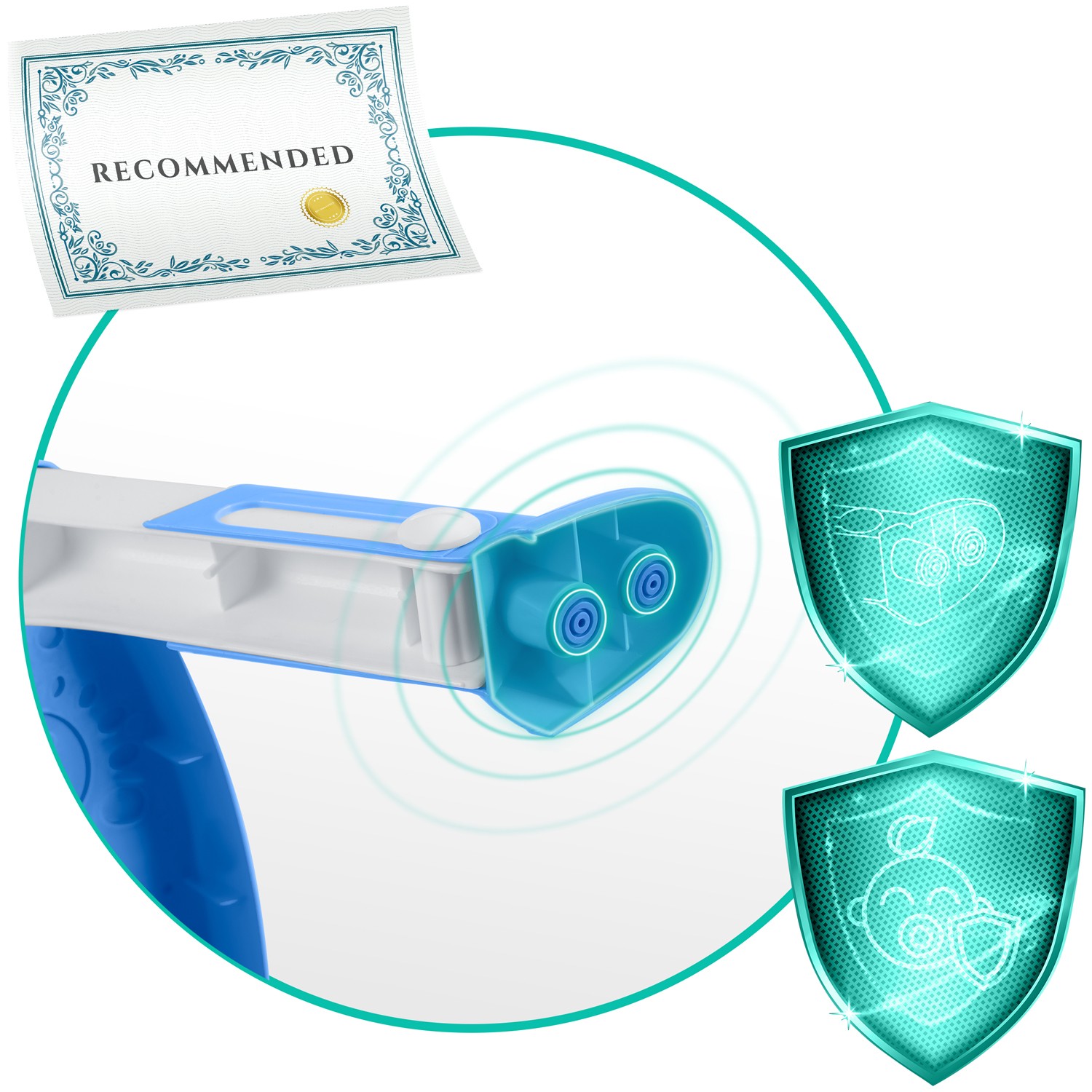 Dzięki ergonomicznej budowie jest wygodna i dopasowana do kształtu kręgosłupa dziecka, a jej wysokość jest regulowana, więc pasuje do praktycznie wszystkich modeli sedesów.