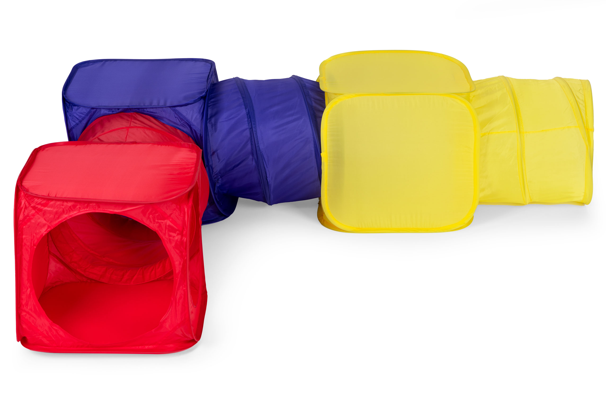Namiot w kształcie kostki jest miejscem, do którego dzieci mogą skradać się korzystając z tuneli. Będzie doskonałą kryjówką dla dziecka i miejscem, które będzie przyciągało na długie godziny zabawy.